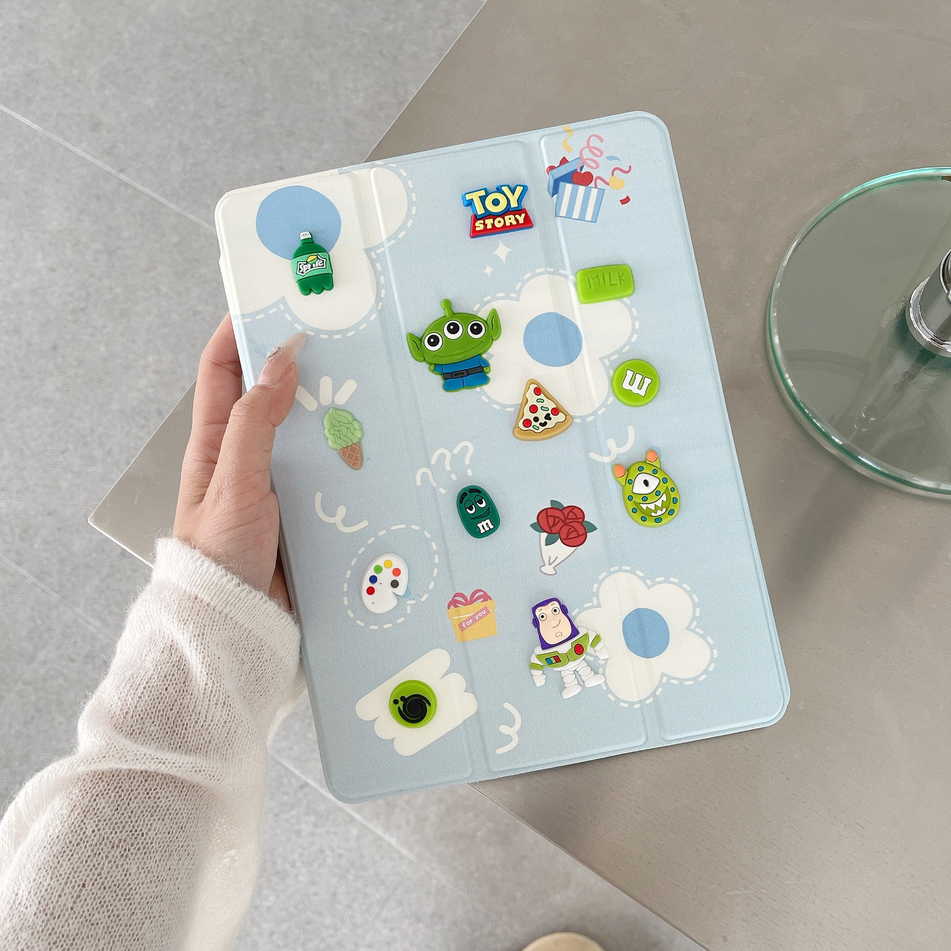 iPad Air6543 태블릿 보호 가죽 케이스에 적합 펜 슬롯 보호 커버가있는 3D 귀여운 만화 낙하 방지스토어 가기