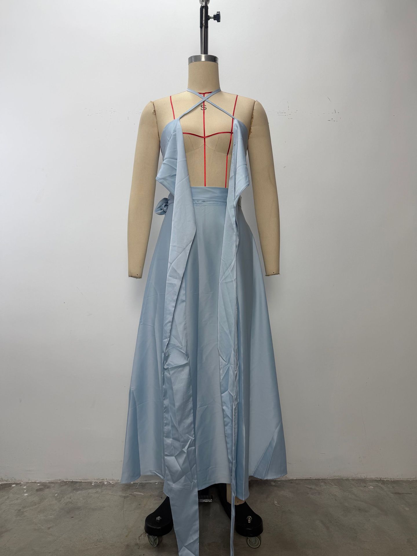 재고 유럽과 미국의 대외 무역 2024 여름 새로운 스트랩리스 슬림 핏 허리 해변 휴일 스커트 세트 여성 의류스토어 가기
