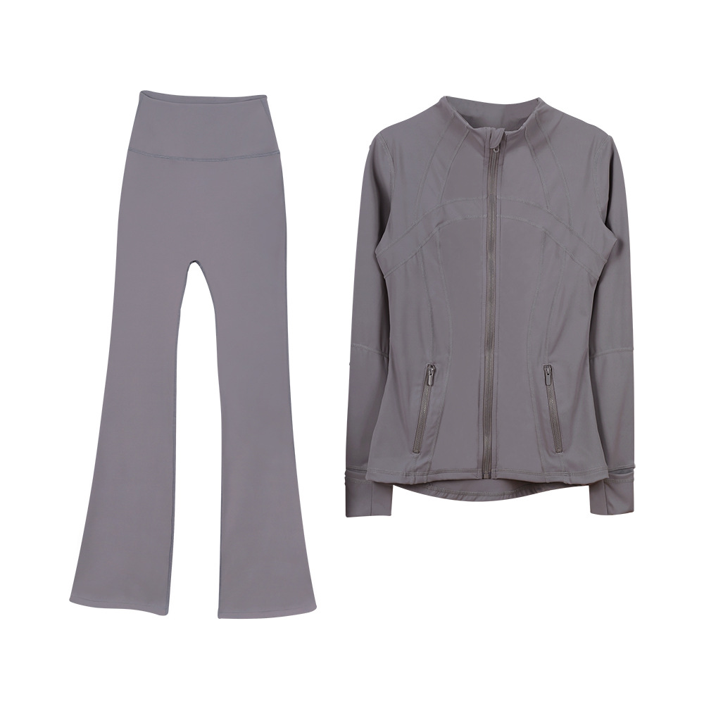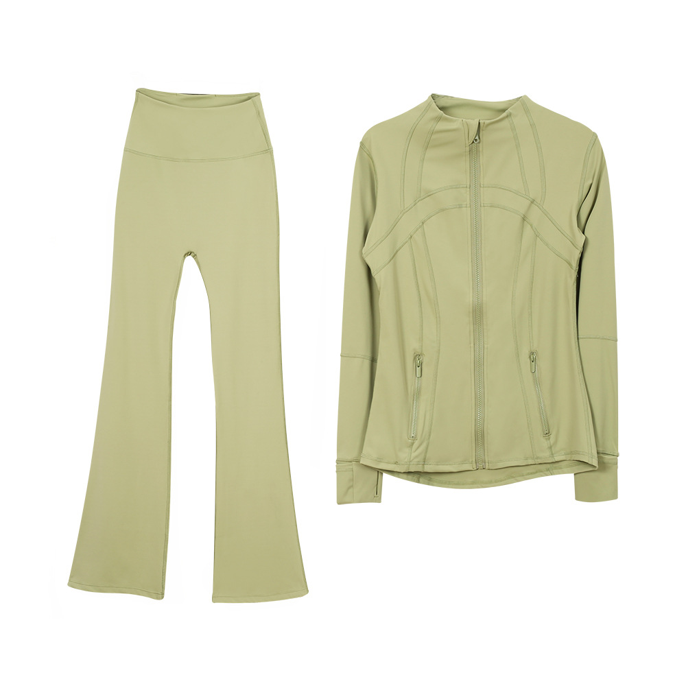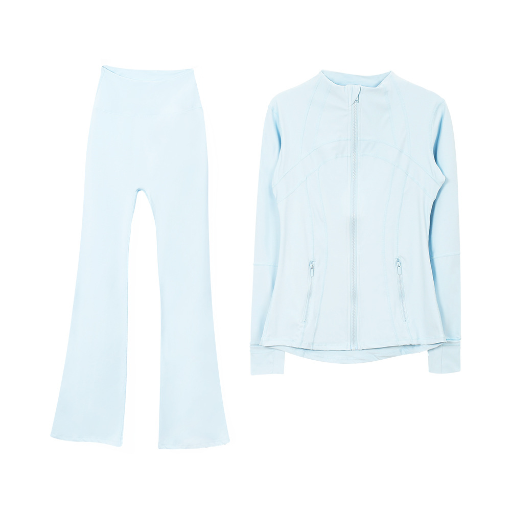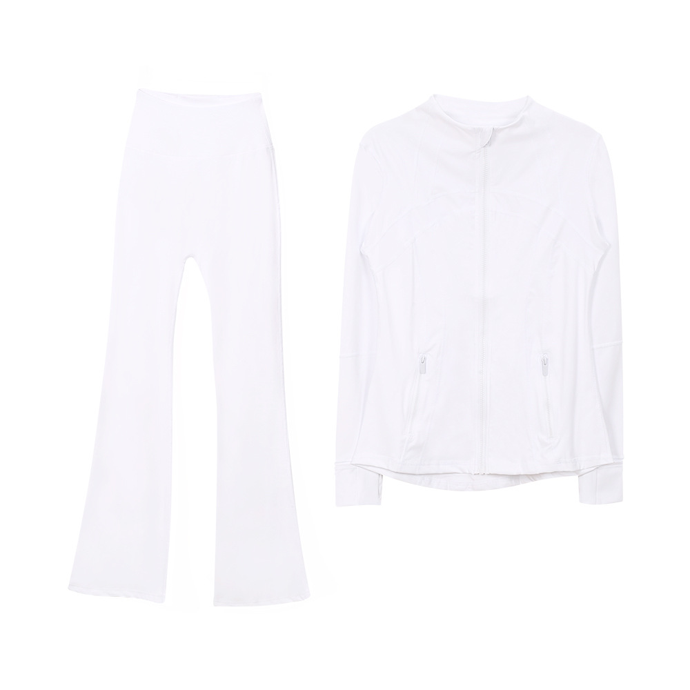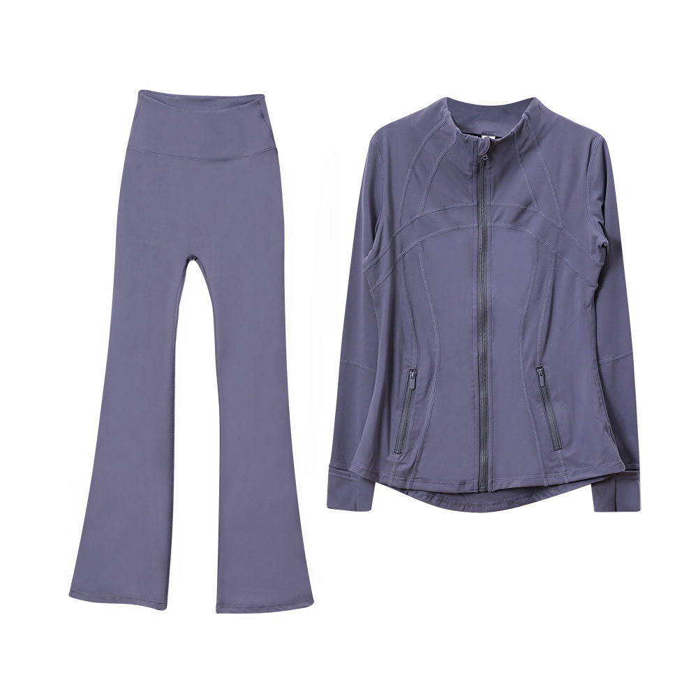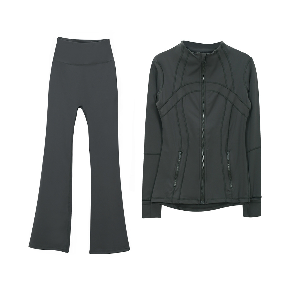 (재고) 화려한 바지 재킷 세트 탑 긴 소매 여성용 슬림 핏 재킷 스트레치 스포츠 러닝 요가 옷
