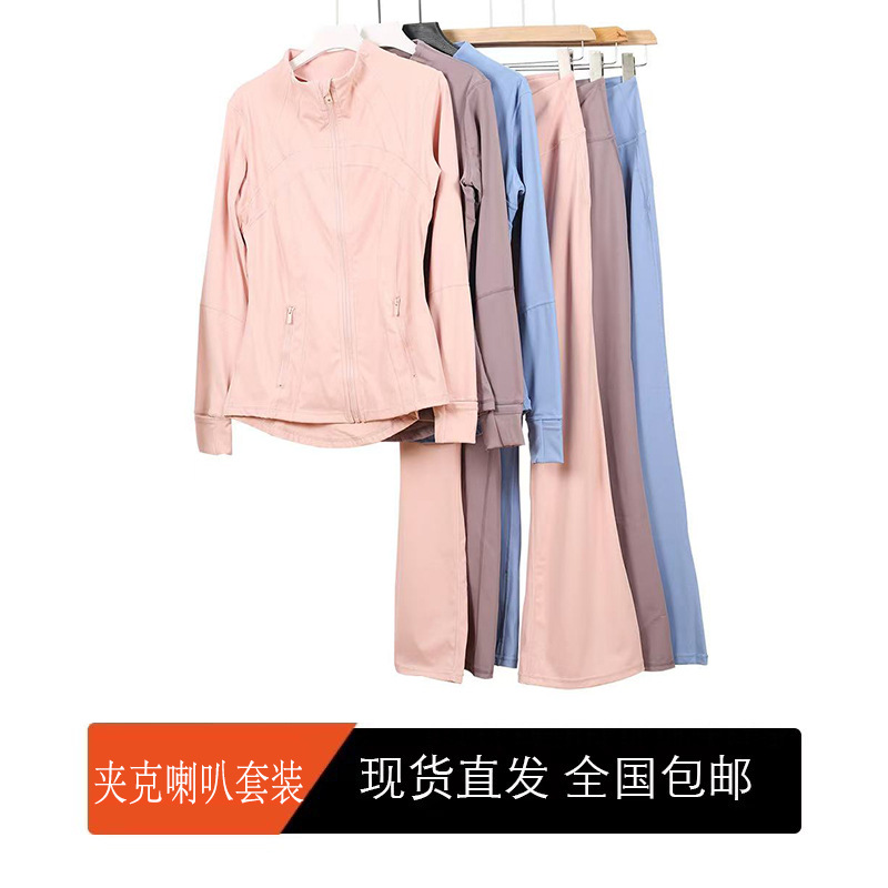 (재고) 화려한 바지 재킷 세트 탑 긴 소매 여성용 슬림 핏 재킷 스트레치 스포츠 러닝 요가 옷스토어 가기