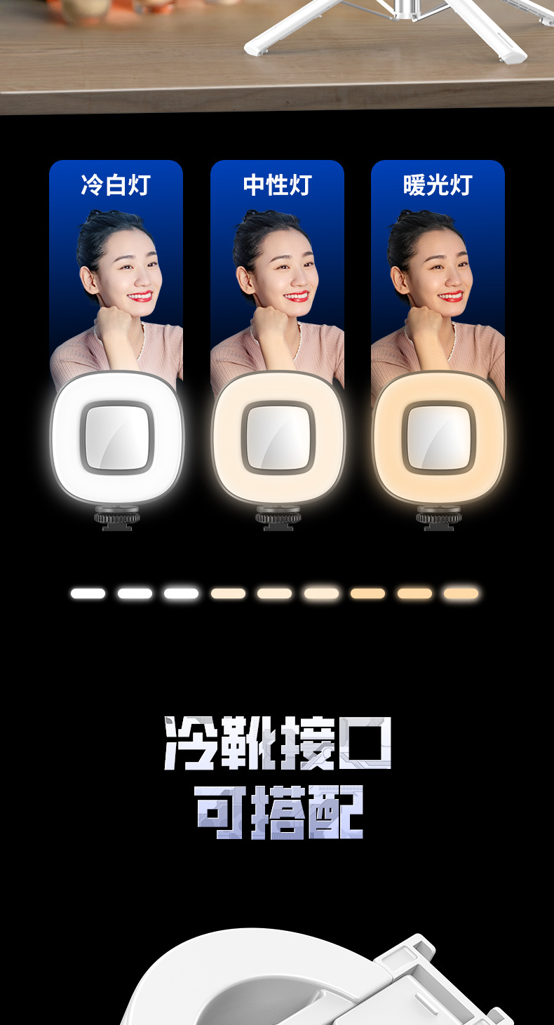 跨境新品热销P135自拍杆磁吸款 四脚手机支架蓝牙自拍杆加补光灯