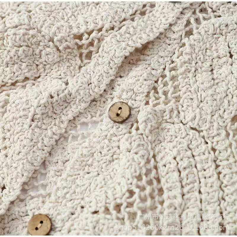 유럽과 미국 스타일의 세련된 우아한 할로우 V-넥 느슨한 스웨터 여성용 빈티지 싱글 브레스트 올 매치 긴팔 카디건 탑스토어 가기