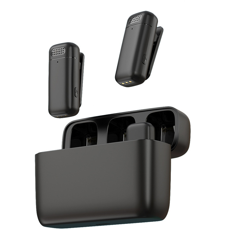 국경을 넘는 인기 무선 핀 마이크 J88, 선명한 음성, 지능형 소음 감소, 충전 케이스 포함 미니 마이크