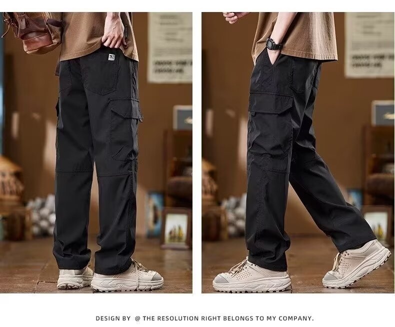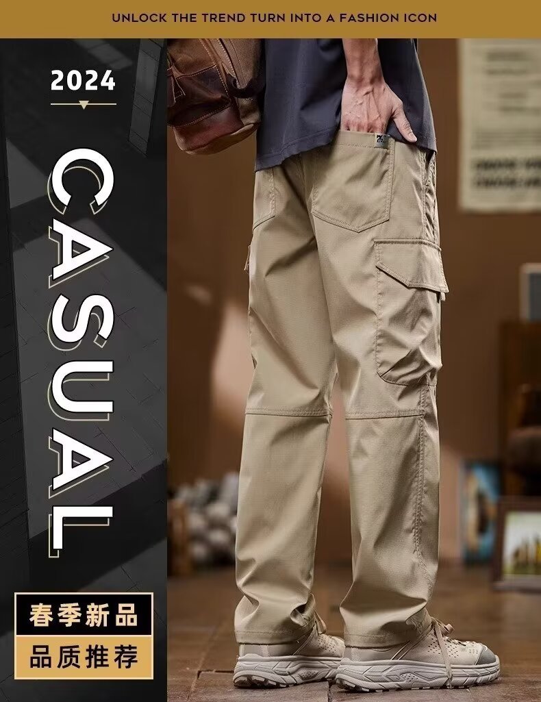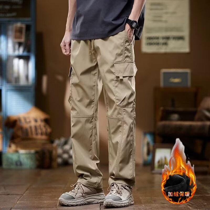 미국식 일자핏 작업복 바지 남성용 가을 겨울 루즈핏 다중 포켓 남성 바지 캐주얼 바지 긴바지 플리스 안감 내구성스토어 가기