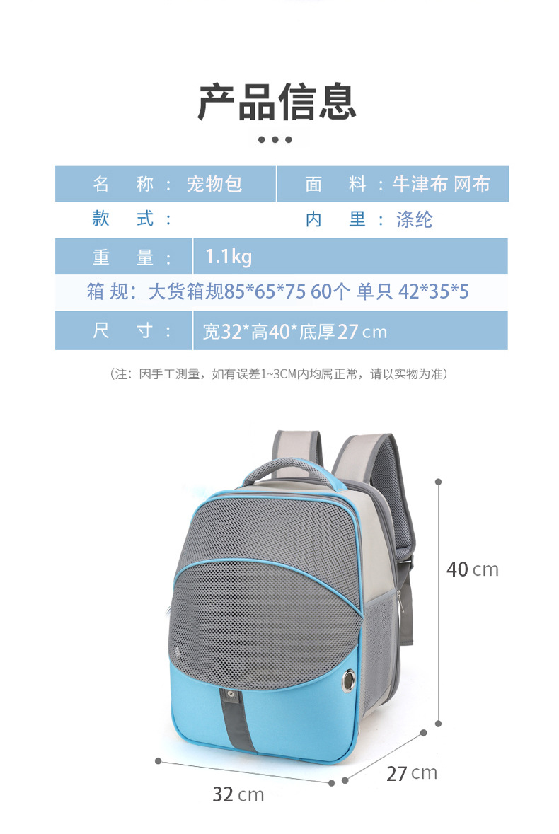 공장 직접 공급 고양이 가방 밖으로 나가는 휴대용 배낭 고양이 배낭 통기성 애완 동물 배낭 대용량 고양이 외출 가방