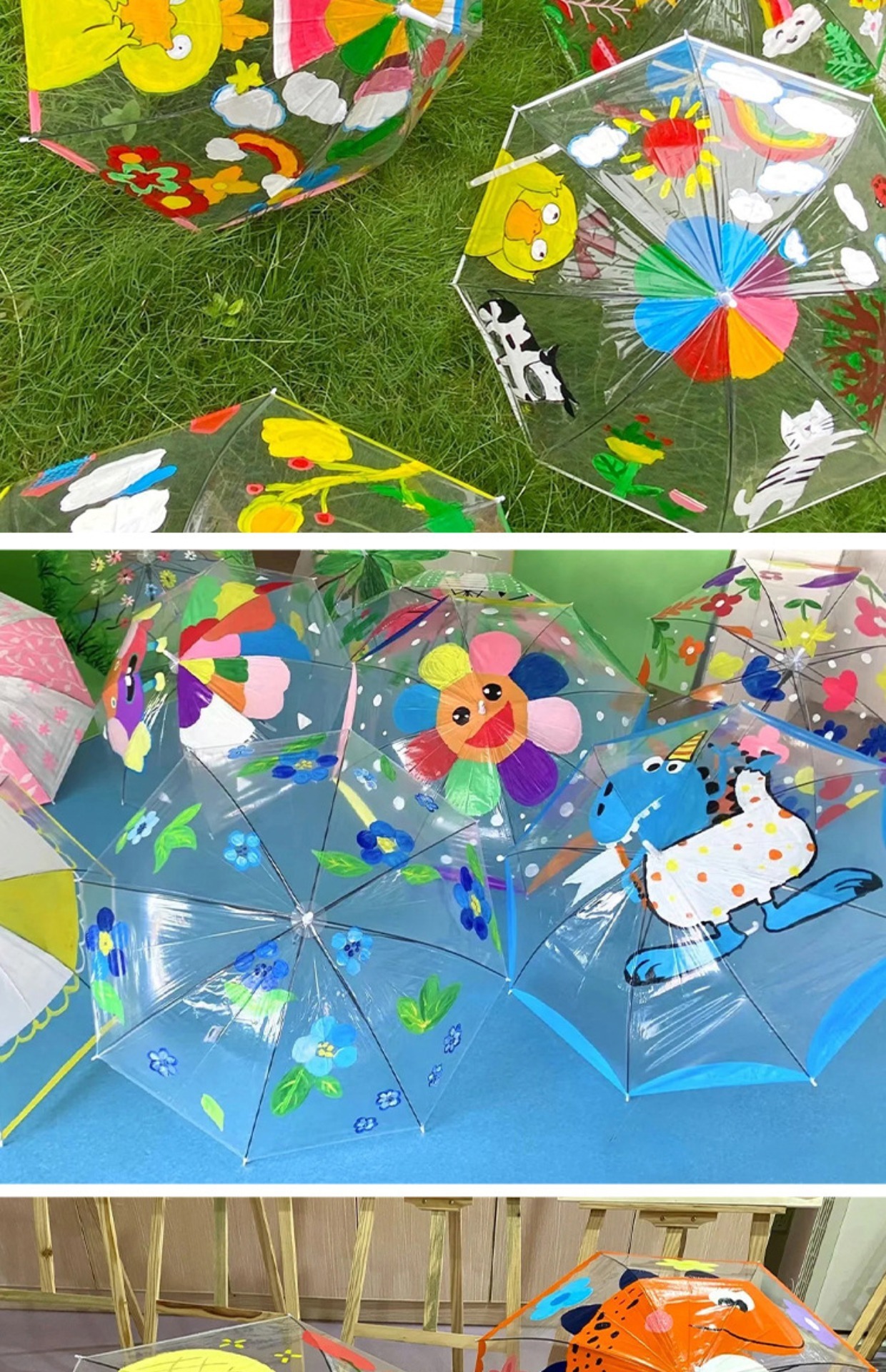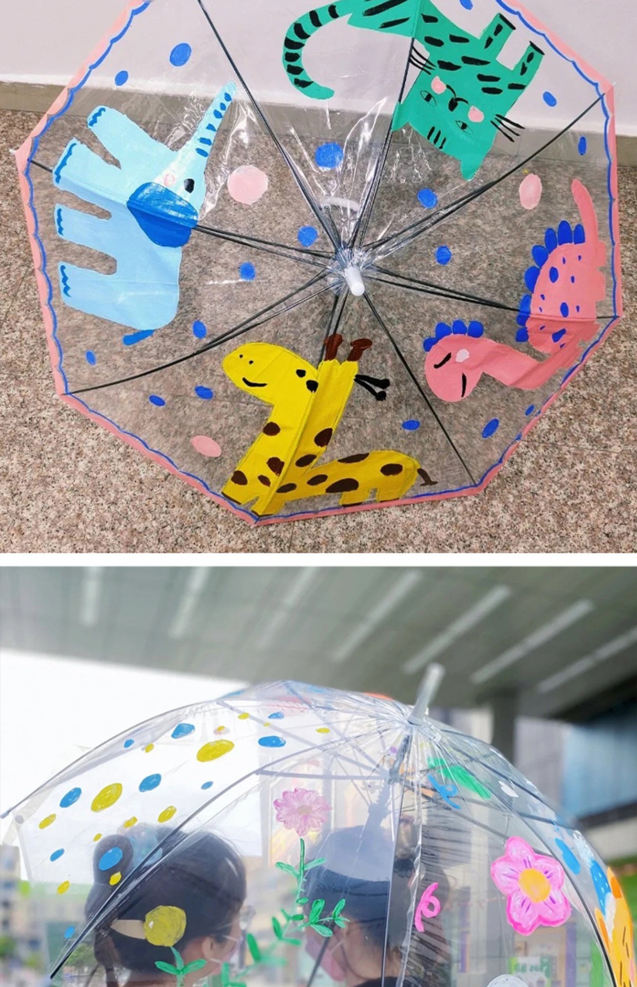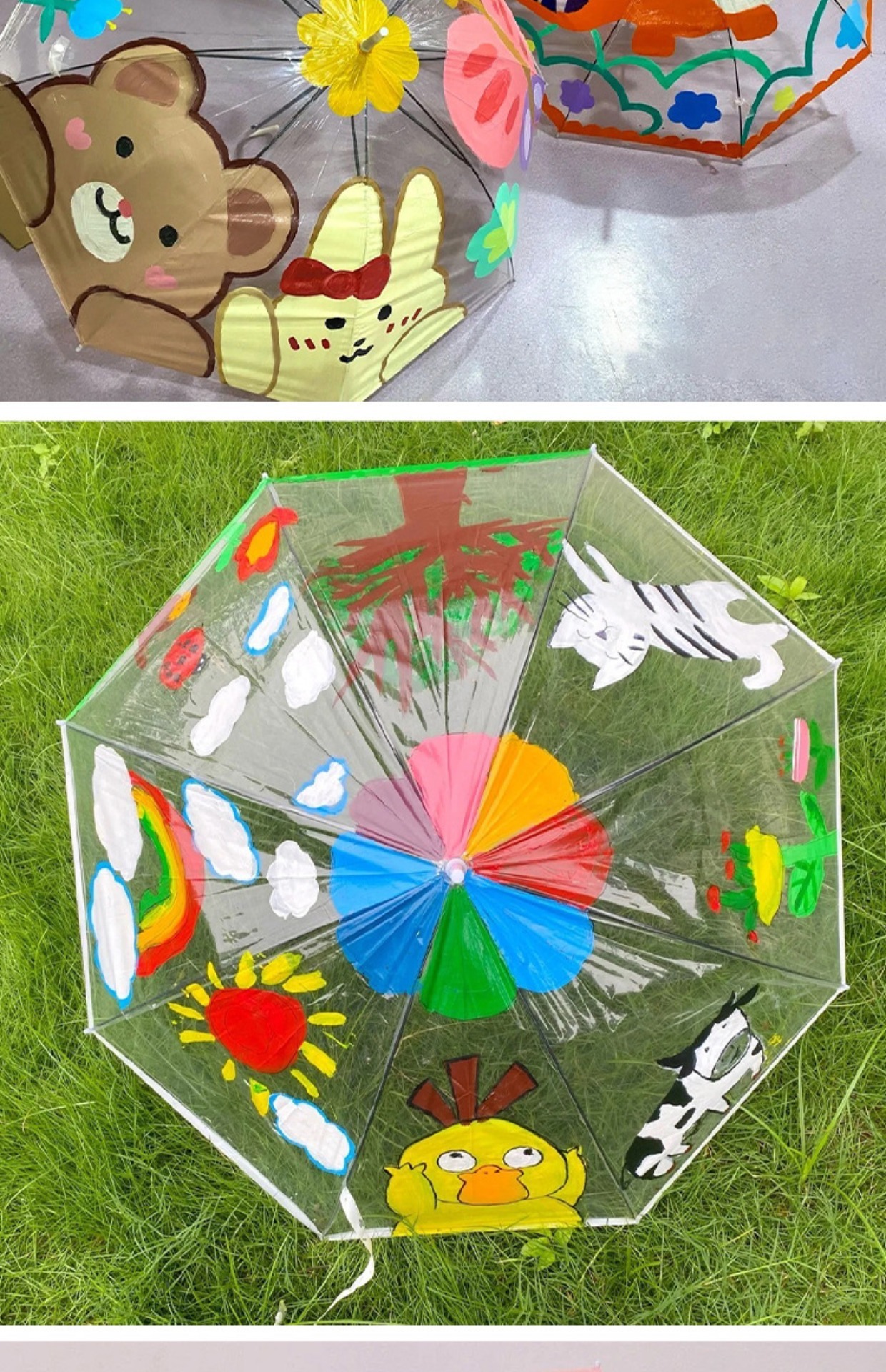 어린이 diy 그림 투명 우산 유치원 그림 창조적 인 수제 낙서 빈 손으로 그린 긴 손잡이 투명 우산