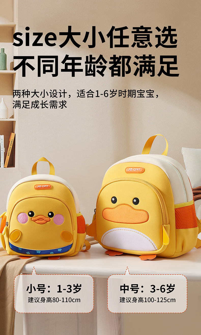 남자와 여자를위한 작은 노란 오리 유치원 학교 가방 1-3-6 세 만화 배낭 추적 어린이를위한 안티 손실 통기성 배낭스토어 가기