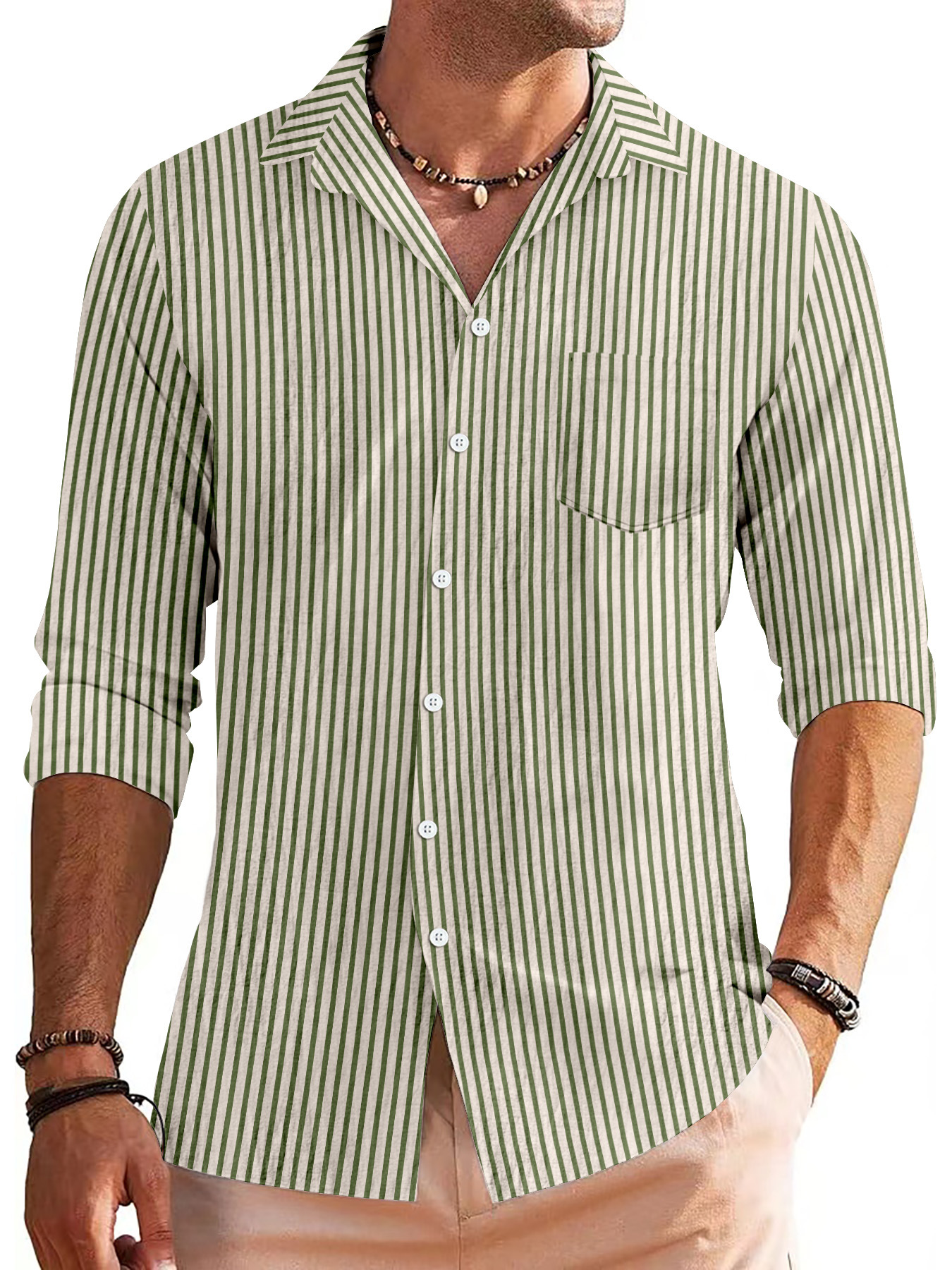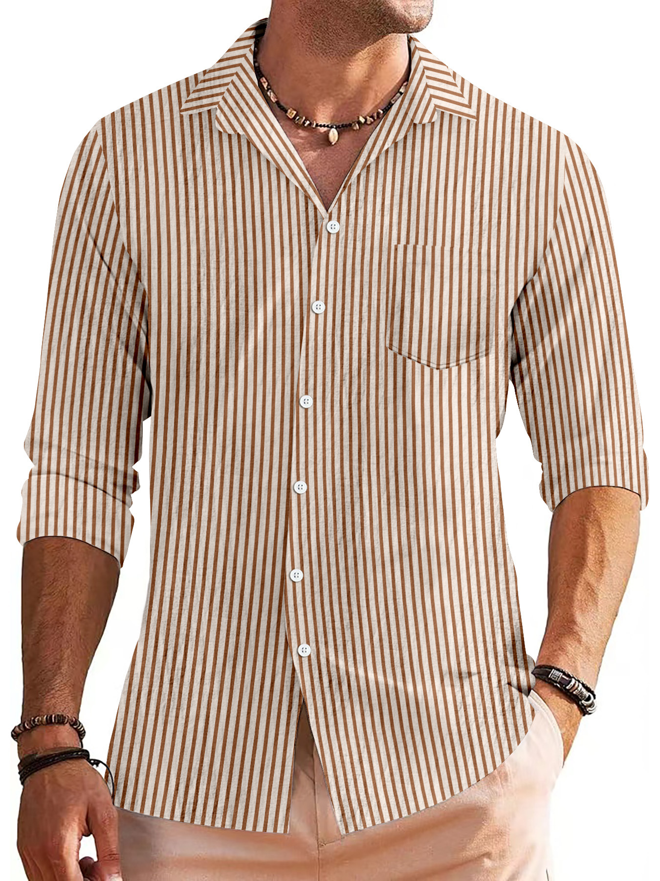 국경 간 유럽과 미국의 봄과 가을 남자 매일 캐주얼 자카드 로브 가운 줄무늬 긴 소매 엘 셔츠스토어 가기