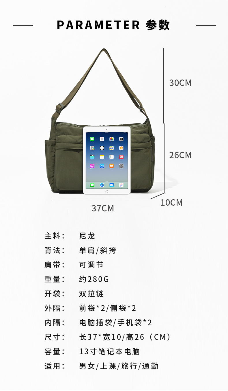 2024 새로운 남성용 가방 여성용 크로스 바디 백 숄더 백 멀티 포켓 경량 워터 증거 대용량 숄더 토트 백