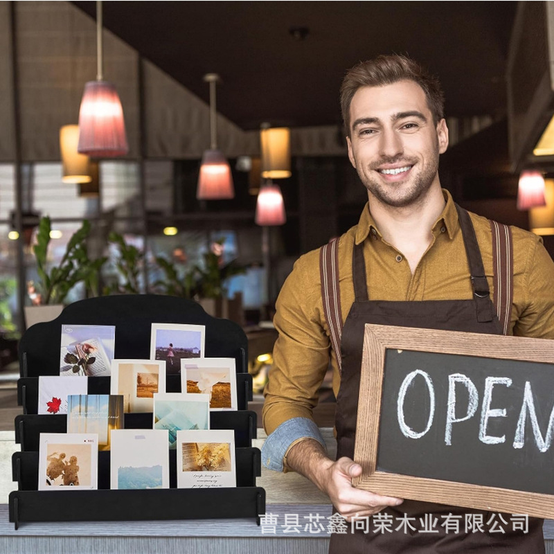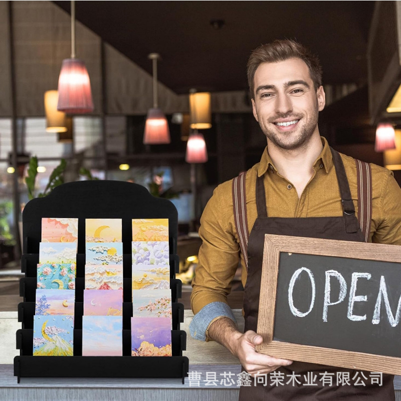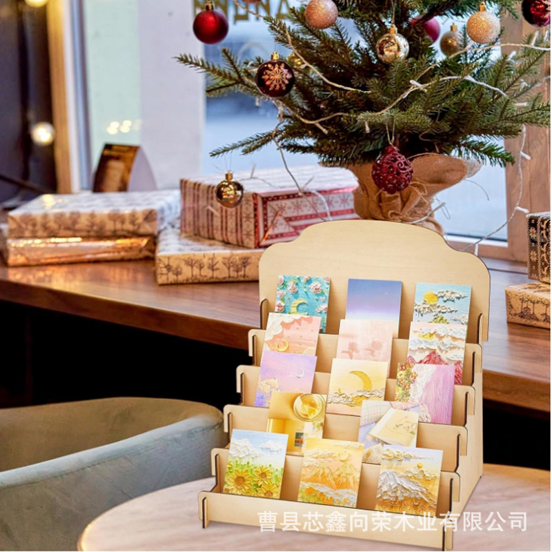 나무 인사말 카드 디스플레이 랙 스테핑 포스터 엽서 스토리지 랙 바느질 데스크탑 화장품 정리 스토리지 랙스토어 가기