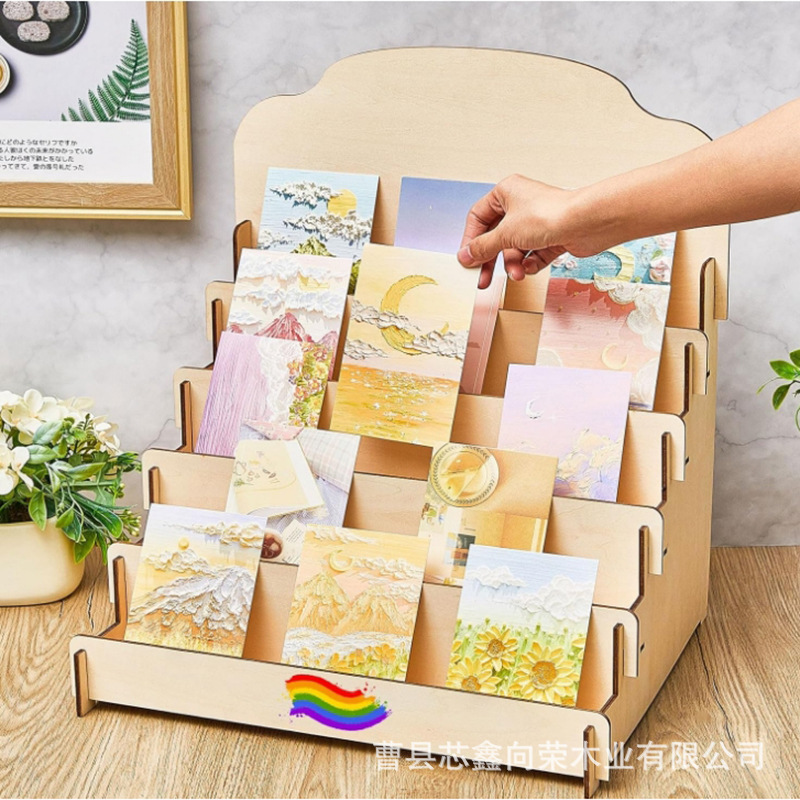 나무 인사말 카드 디스플레이 랙 스테핑 포스터 엽서 스토리지 랙 바느질 데스크탑 화장품 정리 스토리지 랙