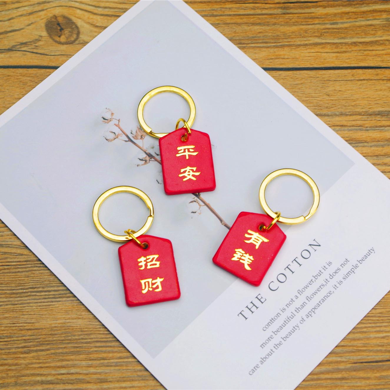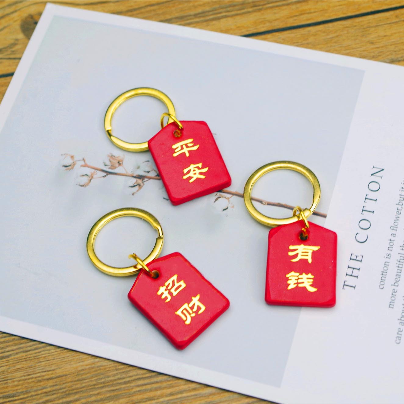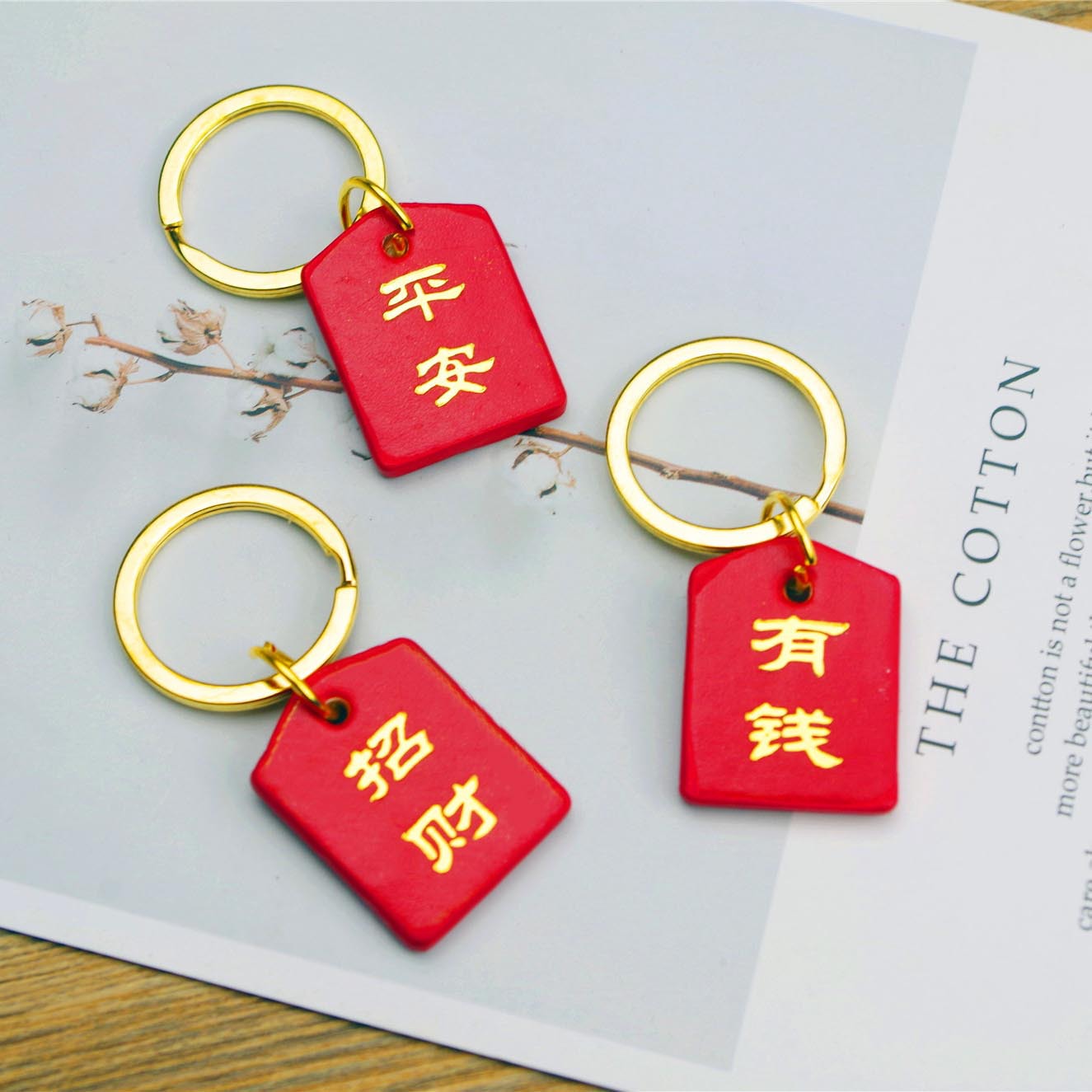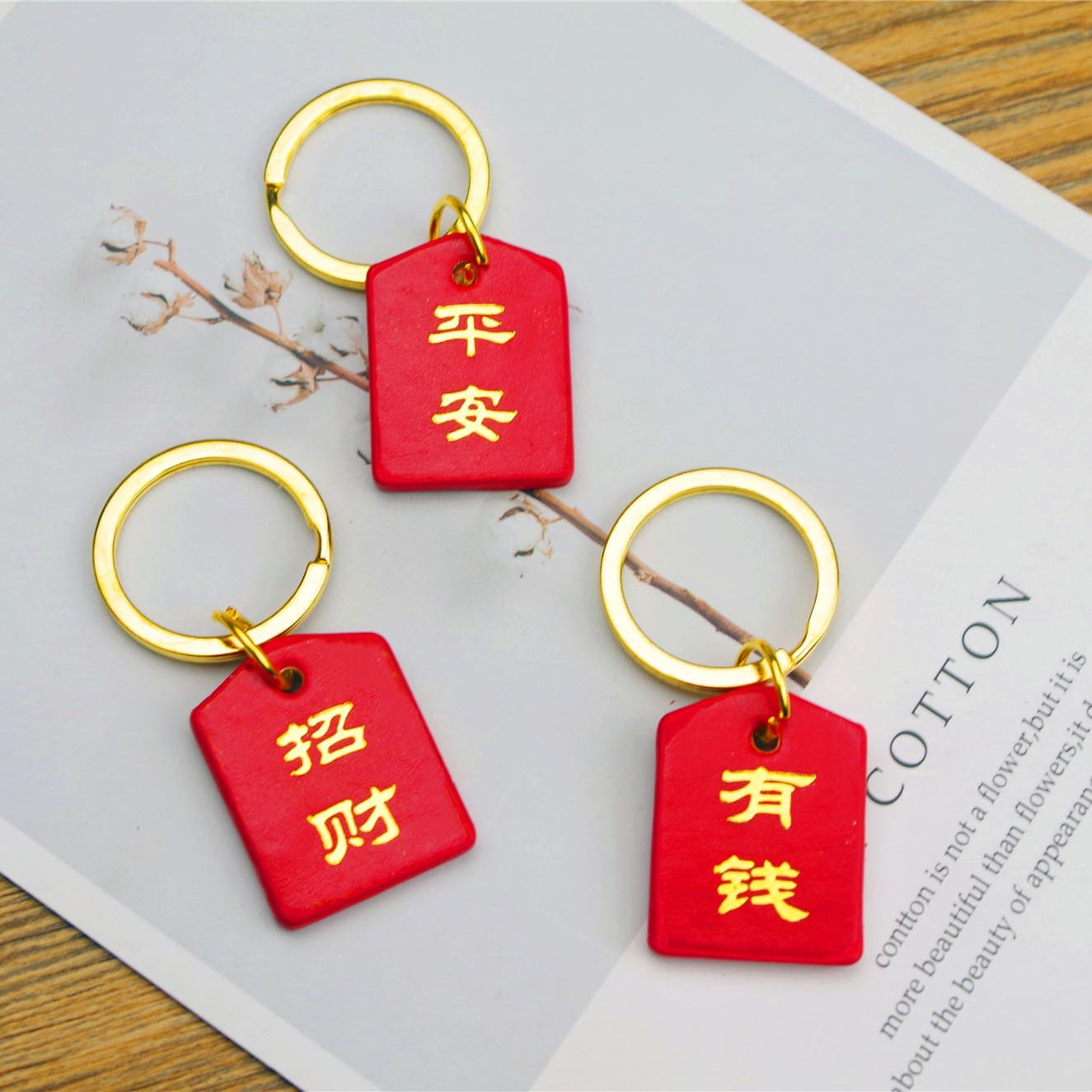 Guofeng 골동품 상단 레이어 소 가죽 자동차 키 체인 액세서리 창조적 인 선물 핑 푸 행복한 열쇠 고리를 고칠 수 있습니다스토어 가기