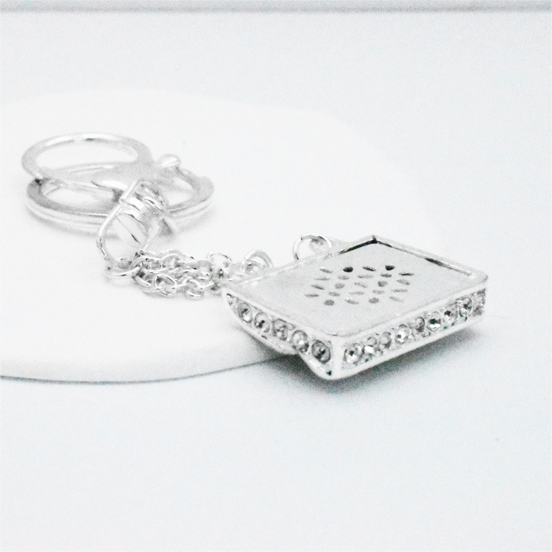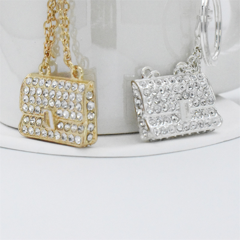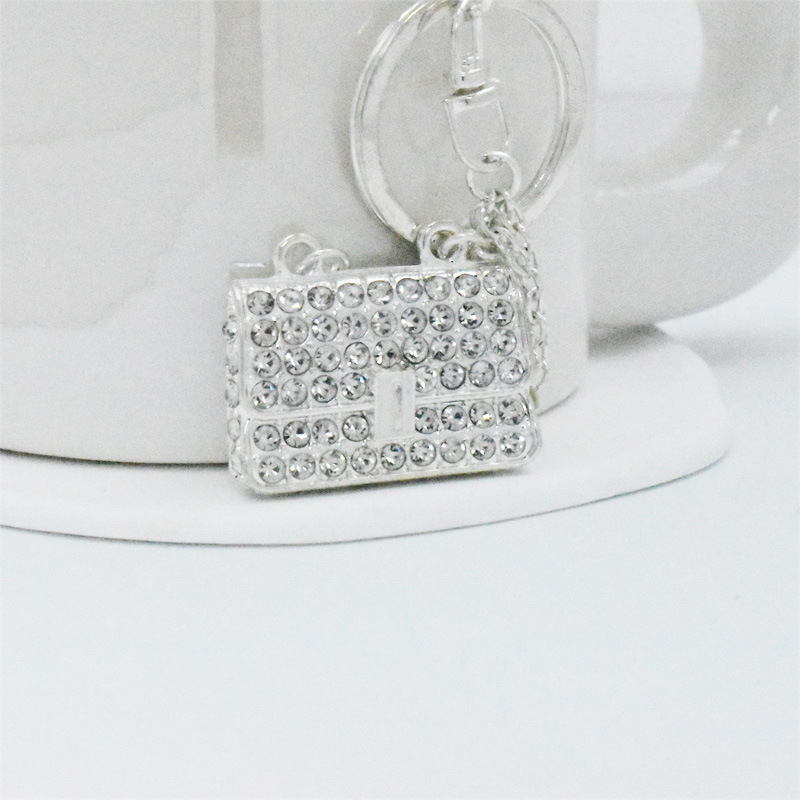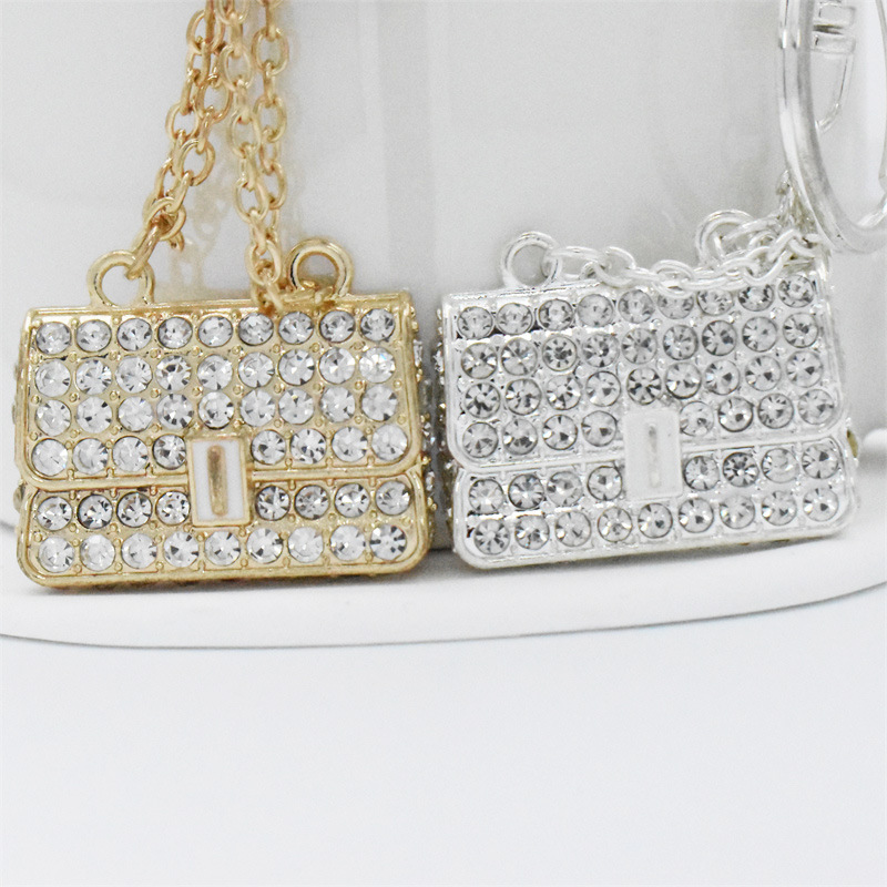 진주 샤넬 스타일 작은 사첼 자동차 키 체인 여성 가방 펜던트 금속 키 체인 링 다이아몬드 작은 선물