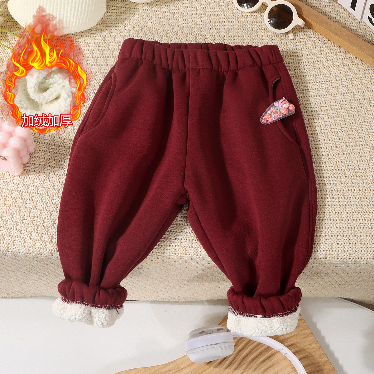 어린이 기모 두꺼운 운동복 겨울 따뜻한 여자 바지 캐시미어 캐주얼 바지 어린이 발 묶인 바지스토어 가기