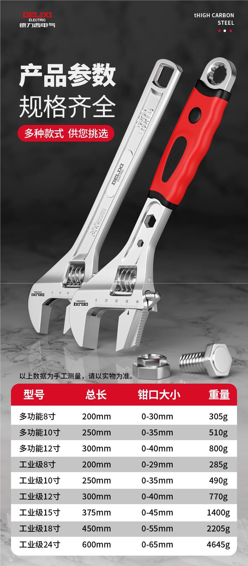 Delixi 조정 가능한 렌치 유니버설 다기능 느슨한 작은 보드 도구 Daquan 욕실 정품 큰 열린 Yatongsi