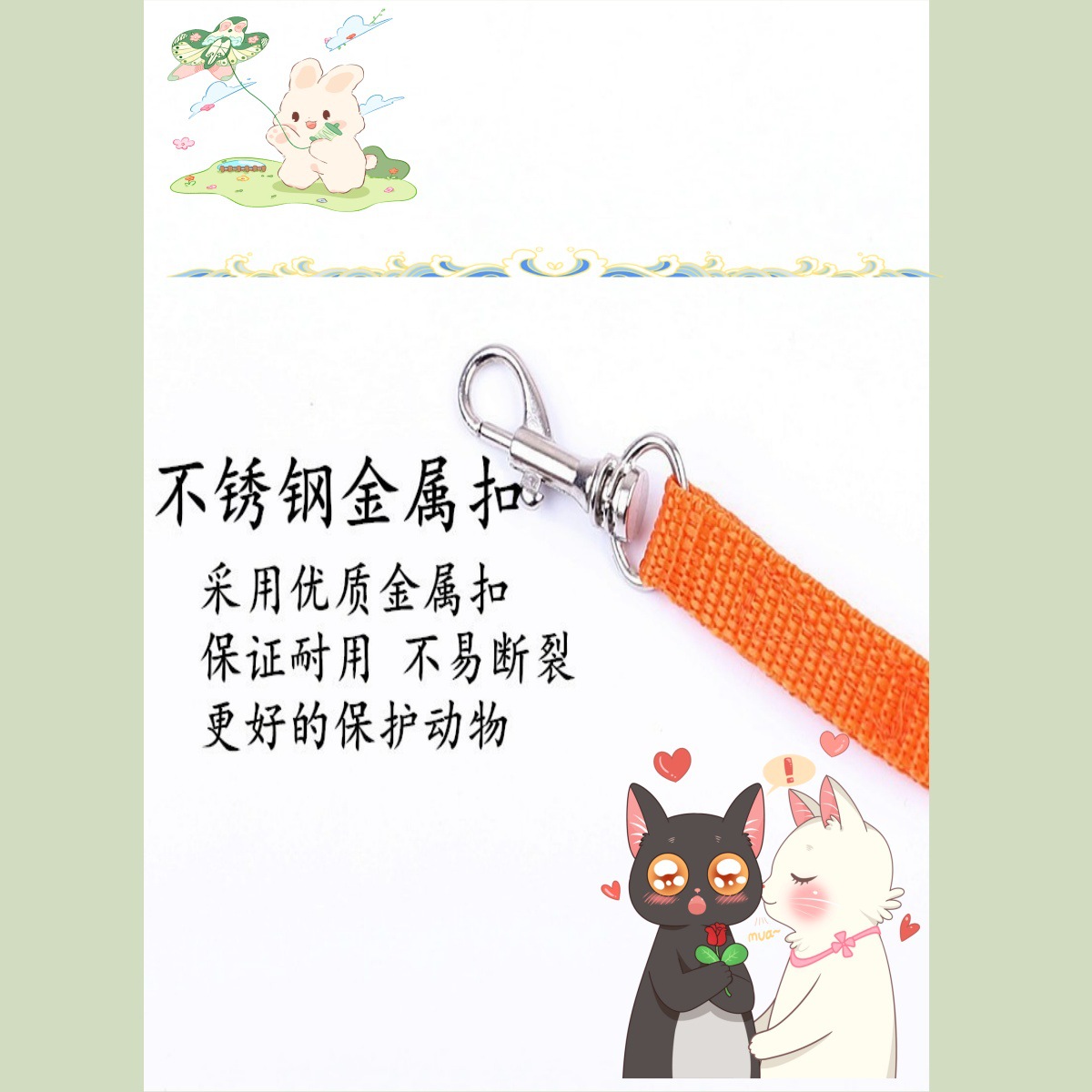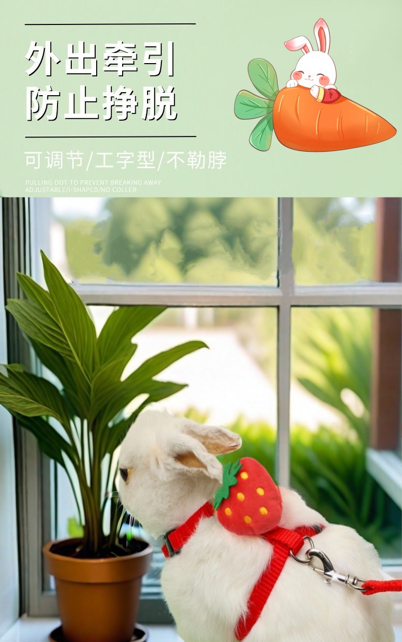 토끼 견인 로프 귀여운 I 모양의 고양이 토끼 가슴 다시 애완 동물 견인 밧줄 밖으로 걷는 토끼 로프 재고 도매
