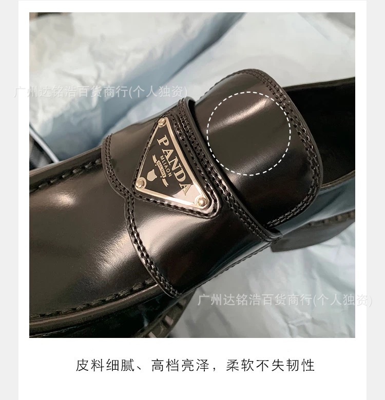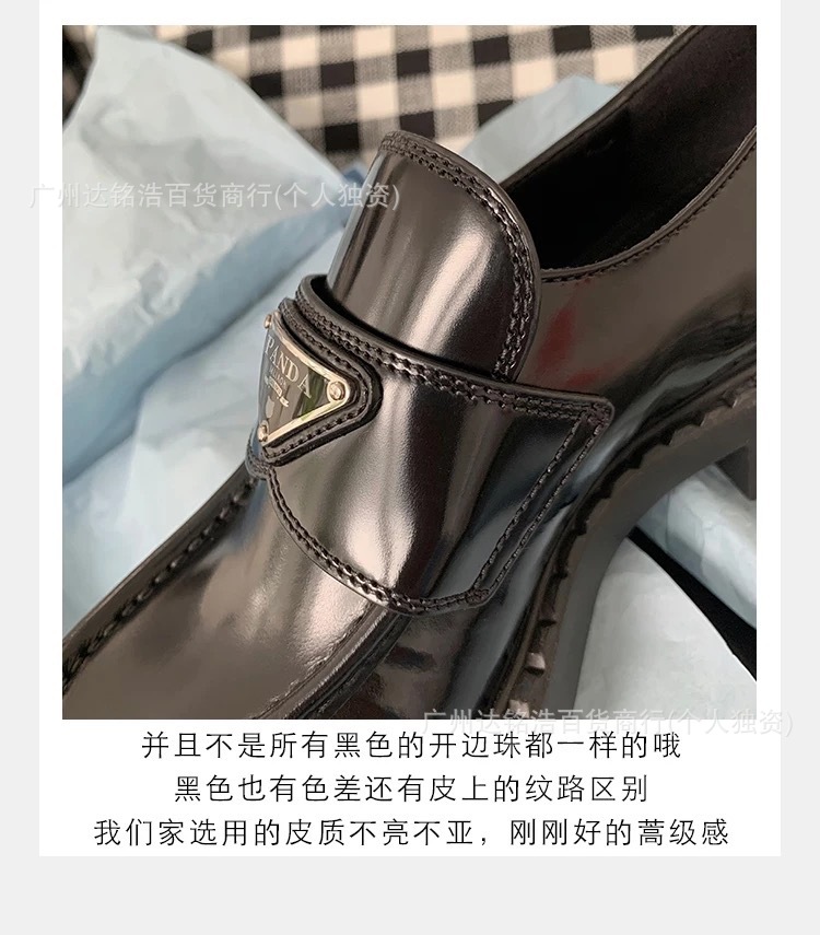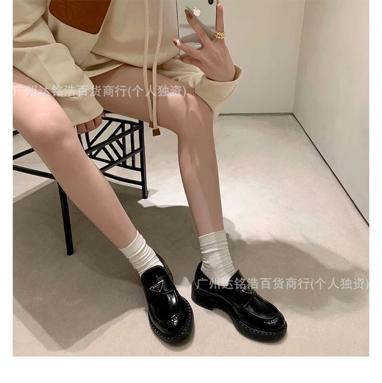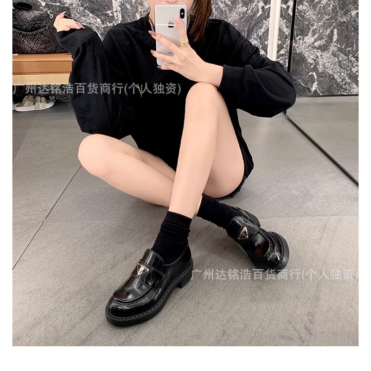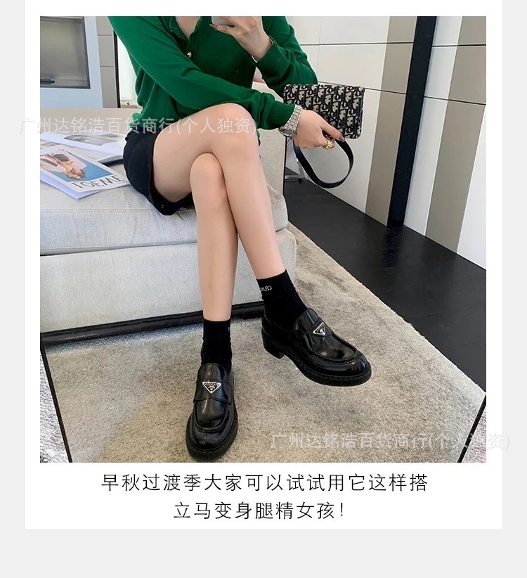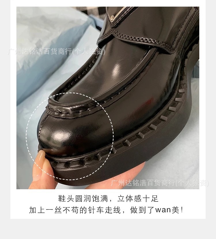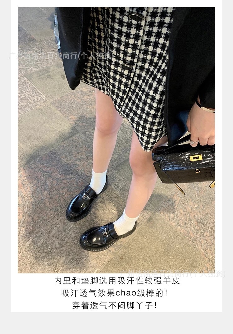 P 브랜드 여성용 두꺼운 굽의 두꺼운 밑창 로퍼 2026 삼각 로고 가죽 슈즈 다용도 캐주얼 슈즈 낮은 굽 슬립온스토어 가기