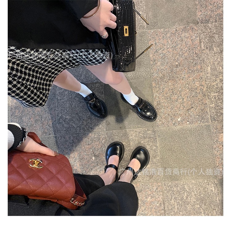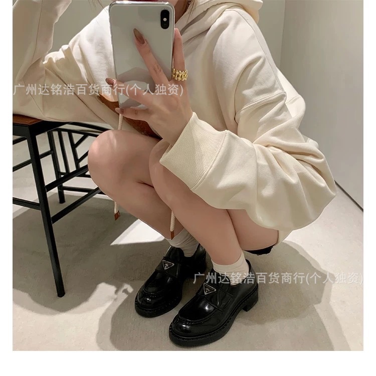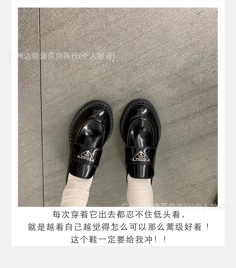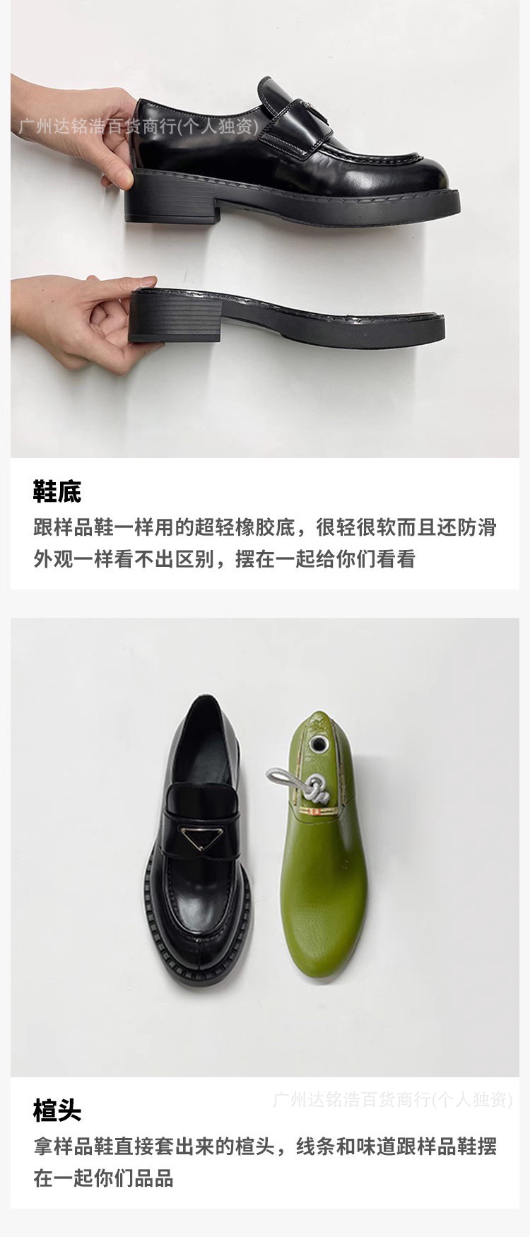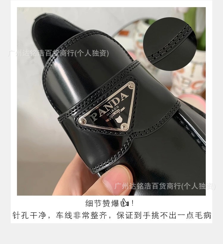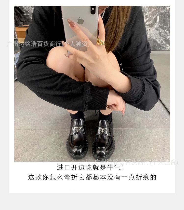 P 브랜드 여성용 두꺼운 굽의 두꺼운 밑창 로퍼 2026 삼각 로고 가죽 슈즈 다용도 캐주얼 슈즈 낮은 굽 슬립온스토어 가기