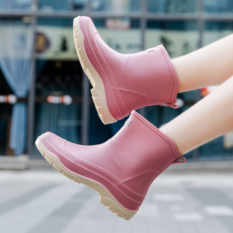 일본식 비 신발 여성 유행 외화 오버 슈즈 경량 방수 고무 신발 신작 미끄럼 방지 성인 짧은 장화