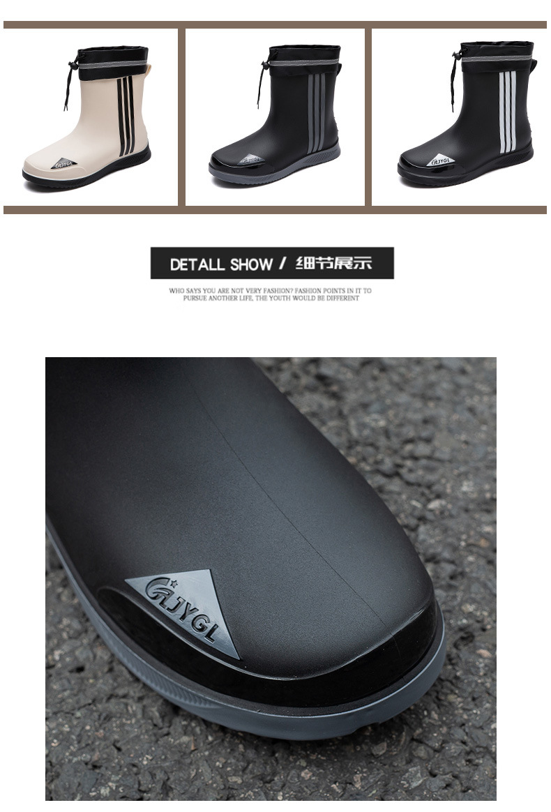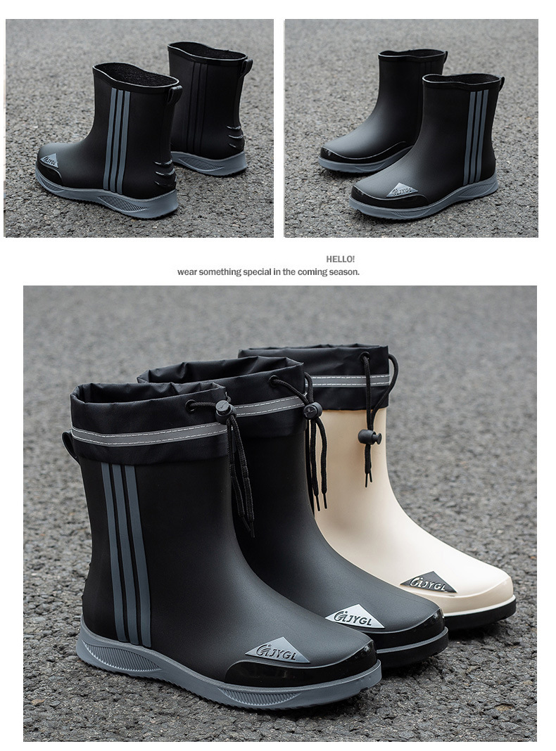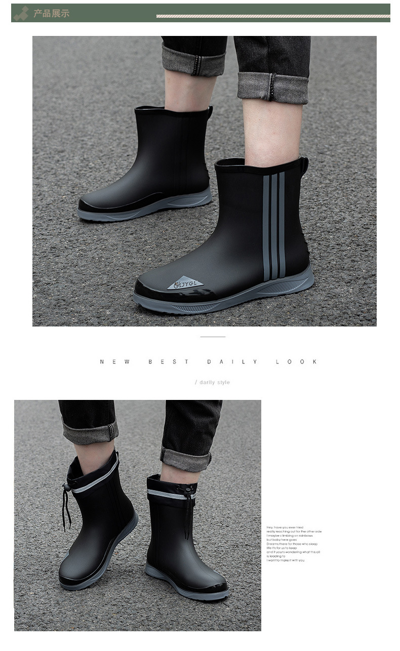 새로운 패션 중간 배럴 비 신발 남성 물 신발 장화 방수 미끄럼 방지 주방 고무 신발 낚시 작업 신발