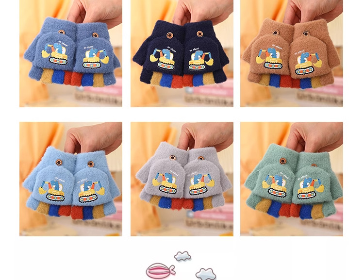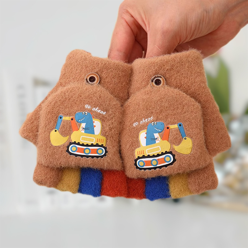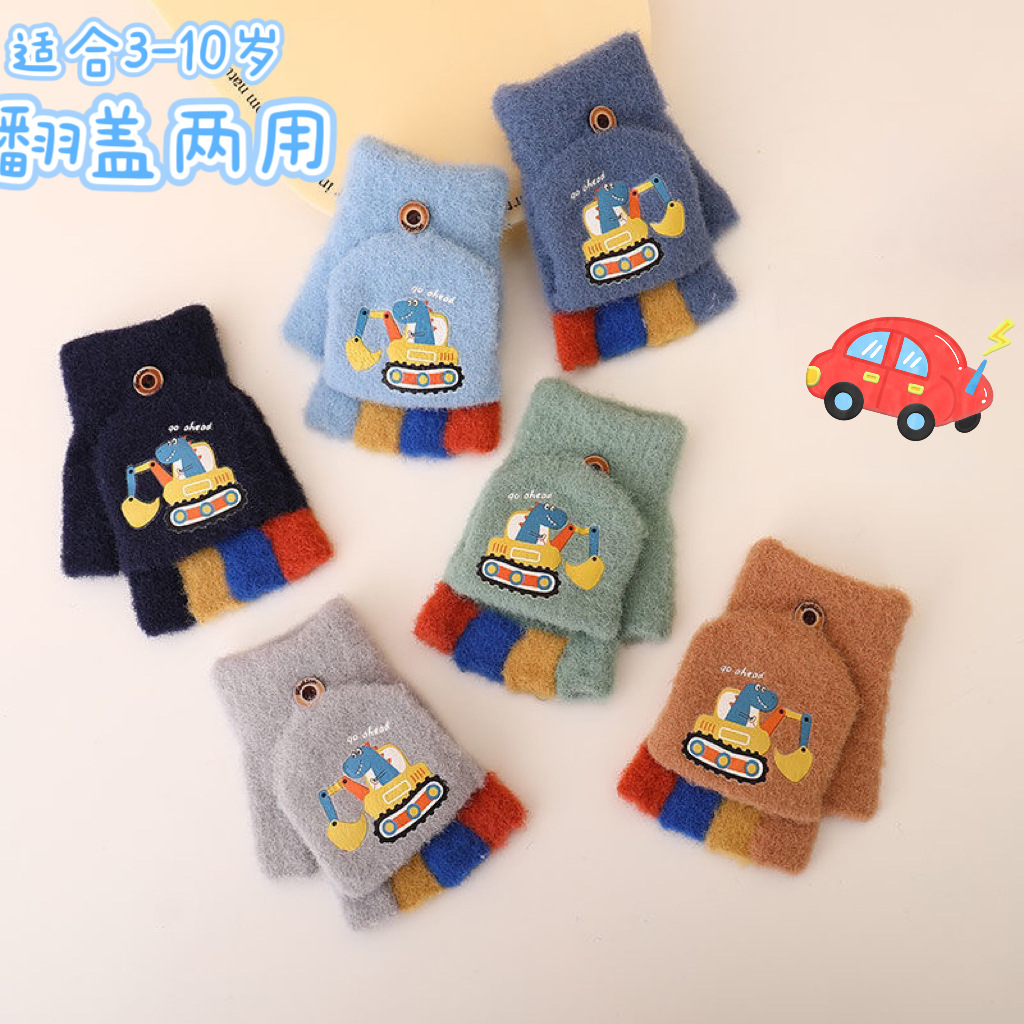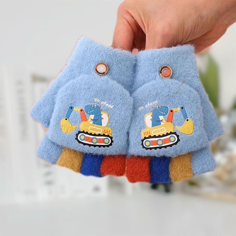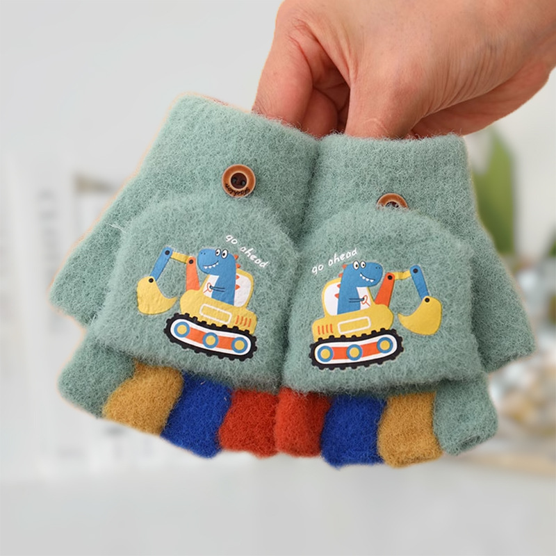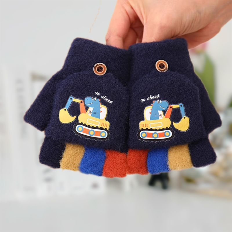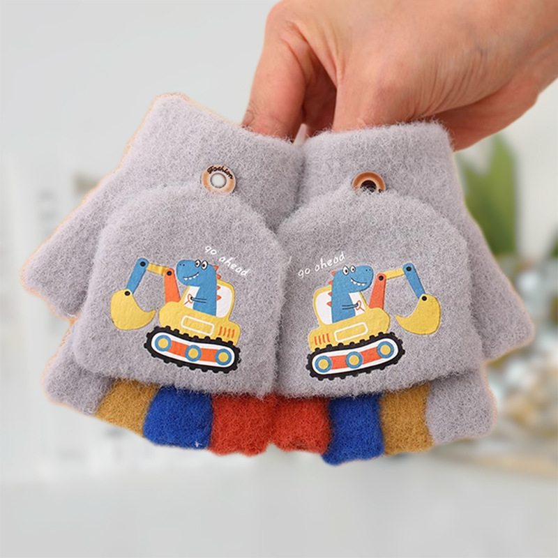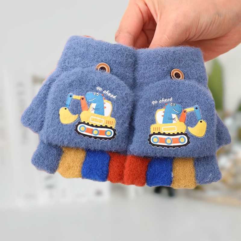 어린이 하프 핑거 플립 커버 이중 목적 장갑 소년 겨울 감기 방지 따뜻한 노출 손가락 학생 부동액 쓰기스토어 가기