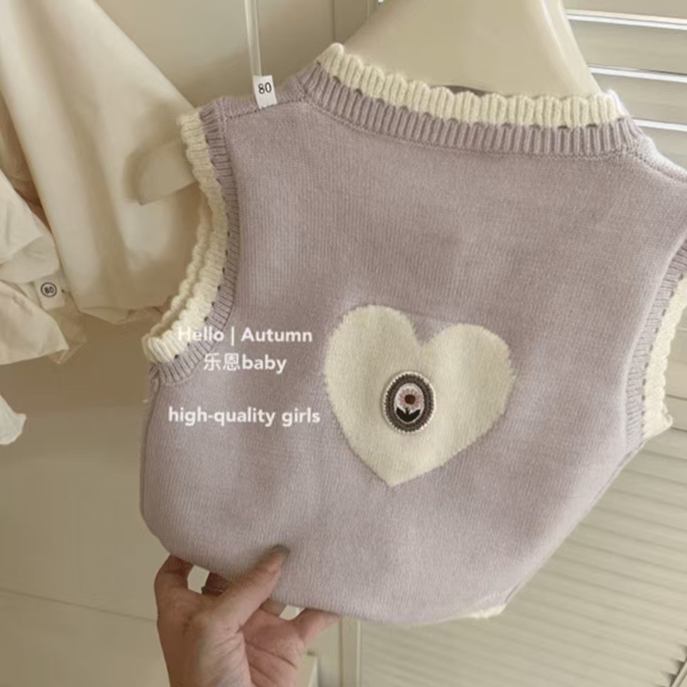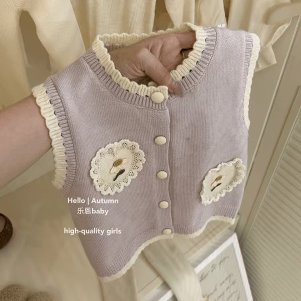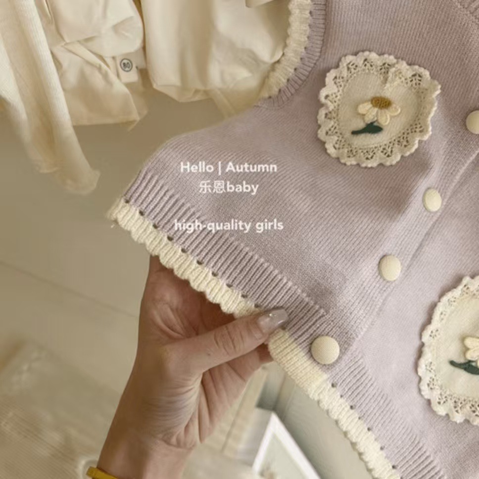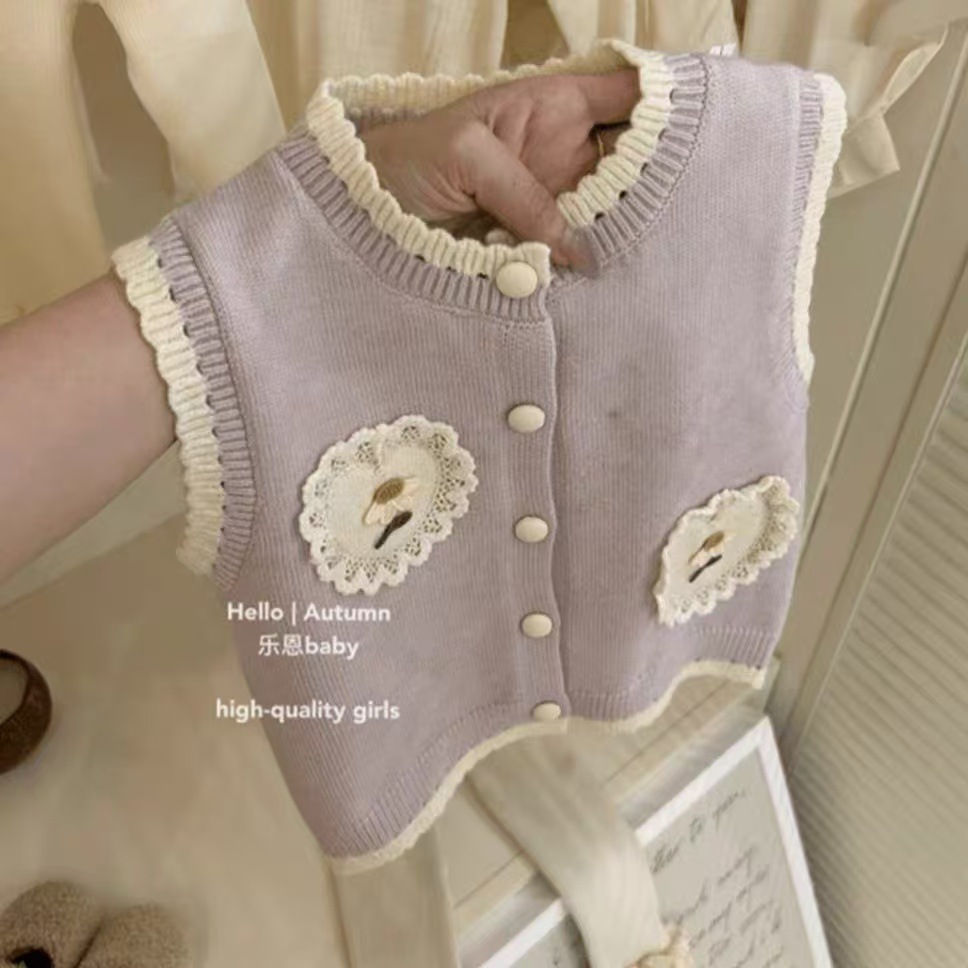 2024 가을과 겨울 조끼 아기 스웨터 새 카디건 소녀의 니트 외부 착용 아기 조끼 자수 라인 옷