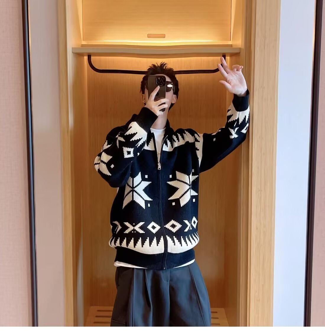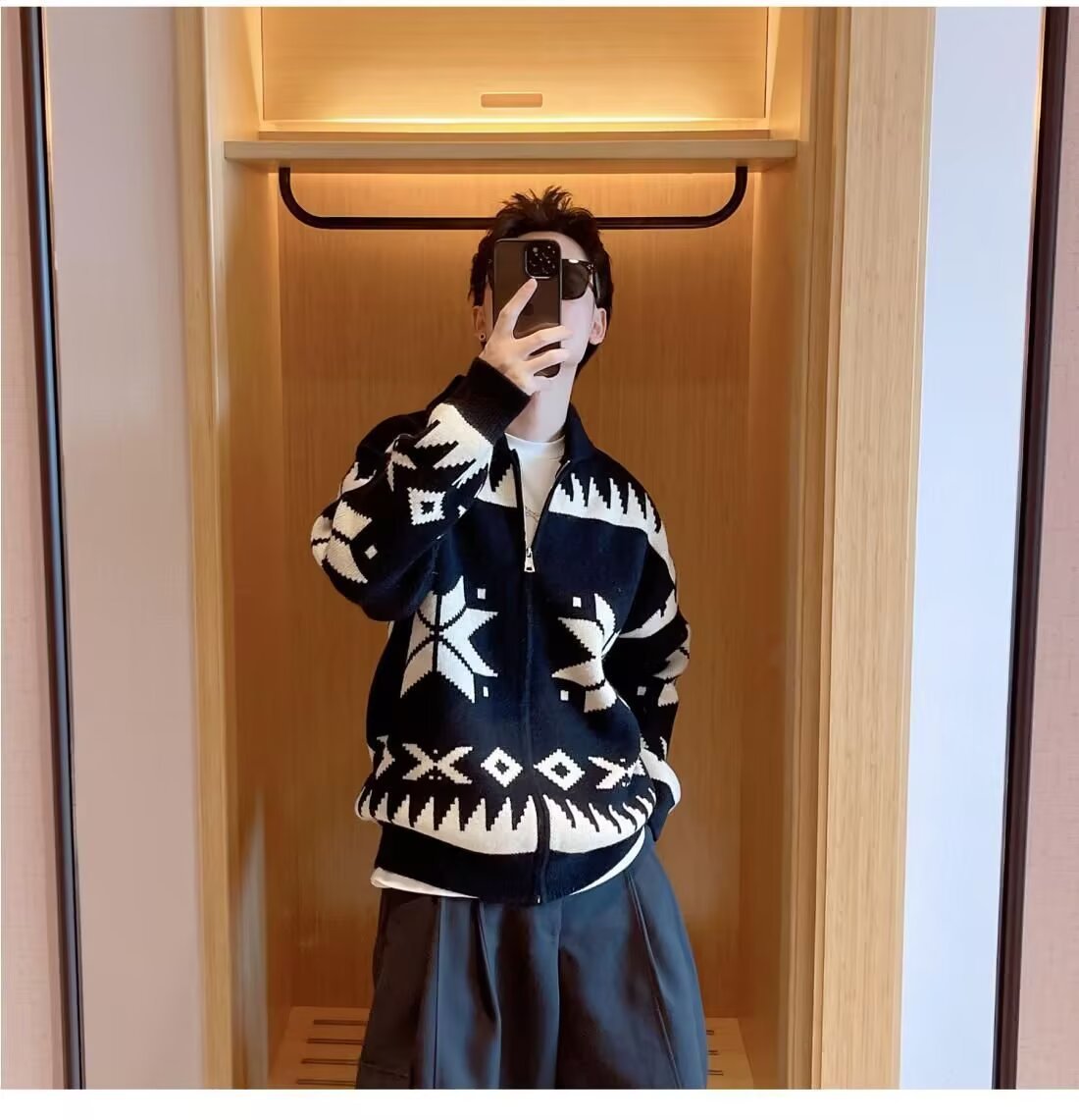 미국 복고풍 니트 스웨터 재킷 남성 봄과 가을 패션 브랜드 스트리트 자카드 디자인 센스 루즈 캐주얼 카디건 스웨터스토어 가기
