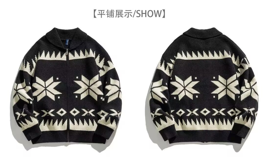 미국 복고풍 니트 스웨터 재킷 남성 봄과 가을 패션 브랜드 스트리트 자카드 디자인 센스 루즈 캐주얼 카디건 스웨터