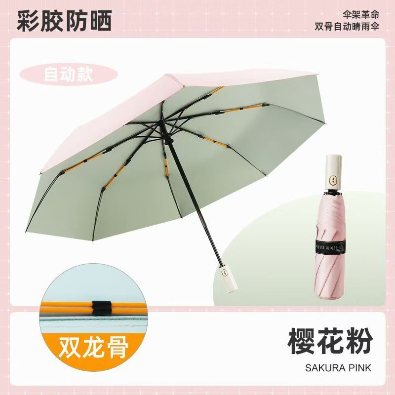 컬러풀한 플라스틱 햇빛 차단 우산, 불투명, 자외선 차단, 햇빛 가리개, 비가 오나 눈이 오나 사용 가능한 자동 접이식 우산, 완전 차광스토어 가기
