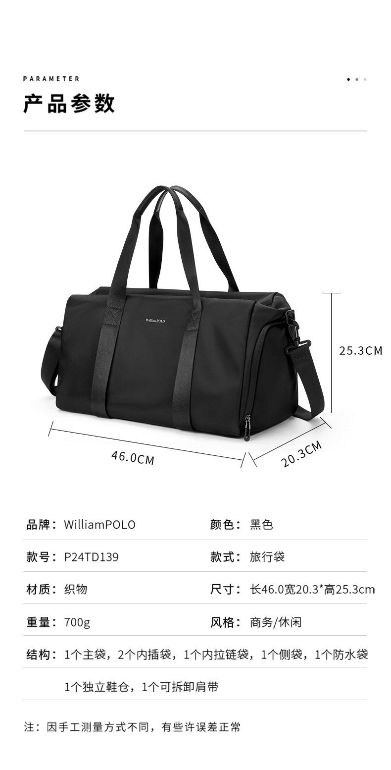 폴 여행 가방 대용량 수하물 가방 건조하고 젖은 별도의 가방 스포츠 피트니스 가방 짧은 거리 여행 가방 핸드백