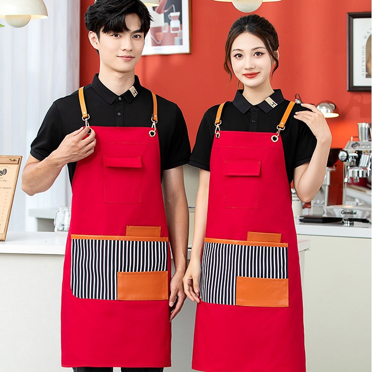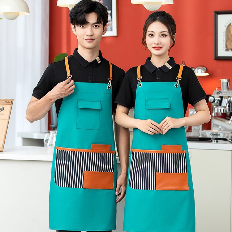 남녀공용 프린트 앞치마, 케이터링, 카페, 밀크티 가게 작업복, 앞치마, 웨이터용, 폴리에스터 면 캔버스, 방수 및 내마모성