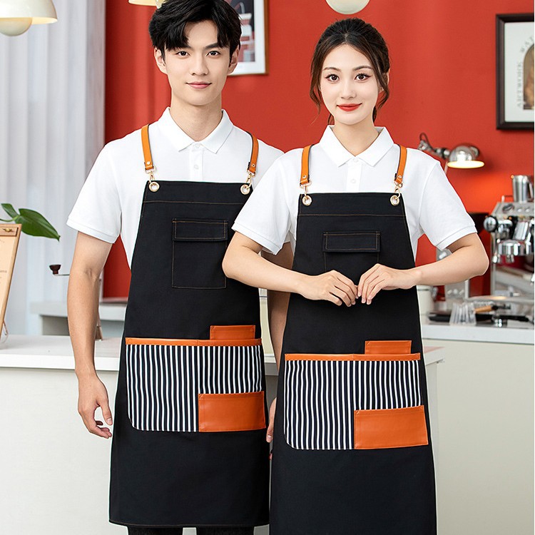 남녀공용 프린트 앞치마, 케이터링, 카페, 밀크티 가게 작업복, 앞치마, 웨이터용, 폴리에스터 면 캔버스, 방수 및 내마모성스토어 가기