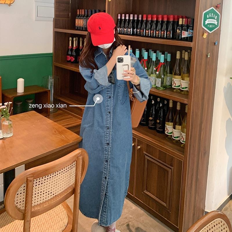 가을 2024 새로운 콜드 스타일 여성의 높은 감각 긴 프랑스 모조 데님 긴 소매 셔츠 원피스스토어 가기