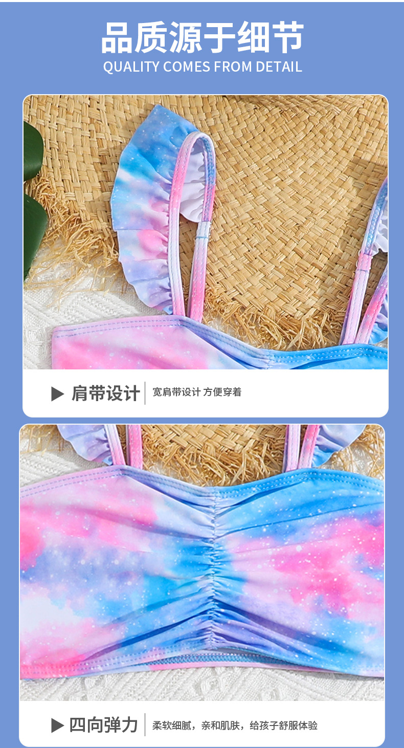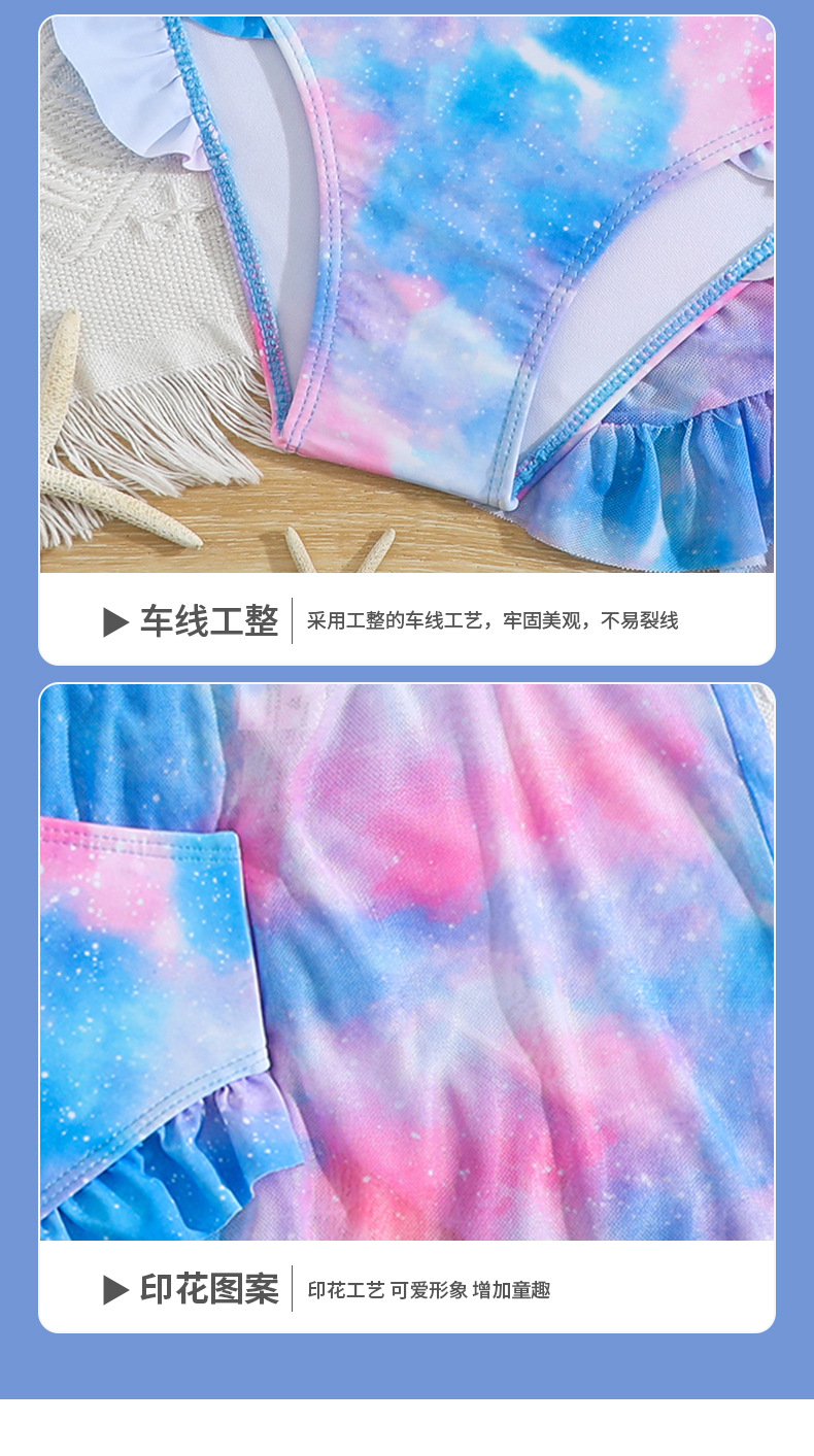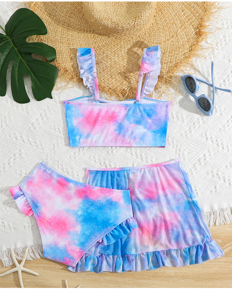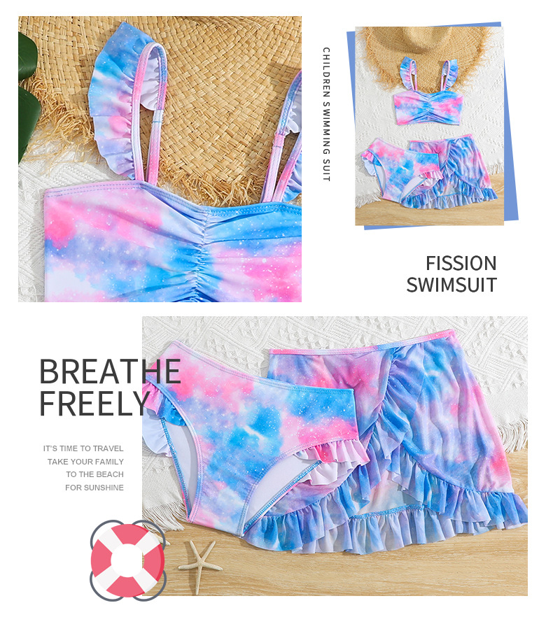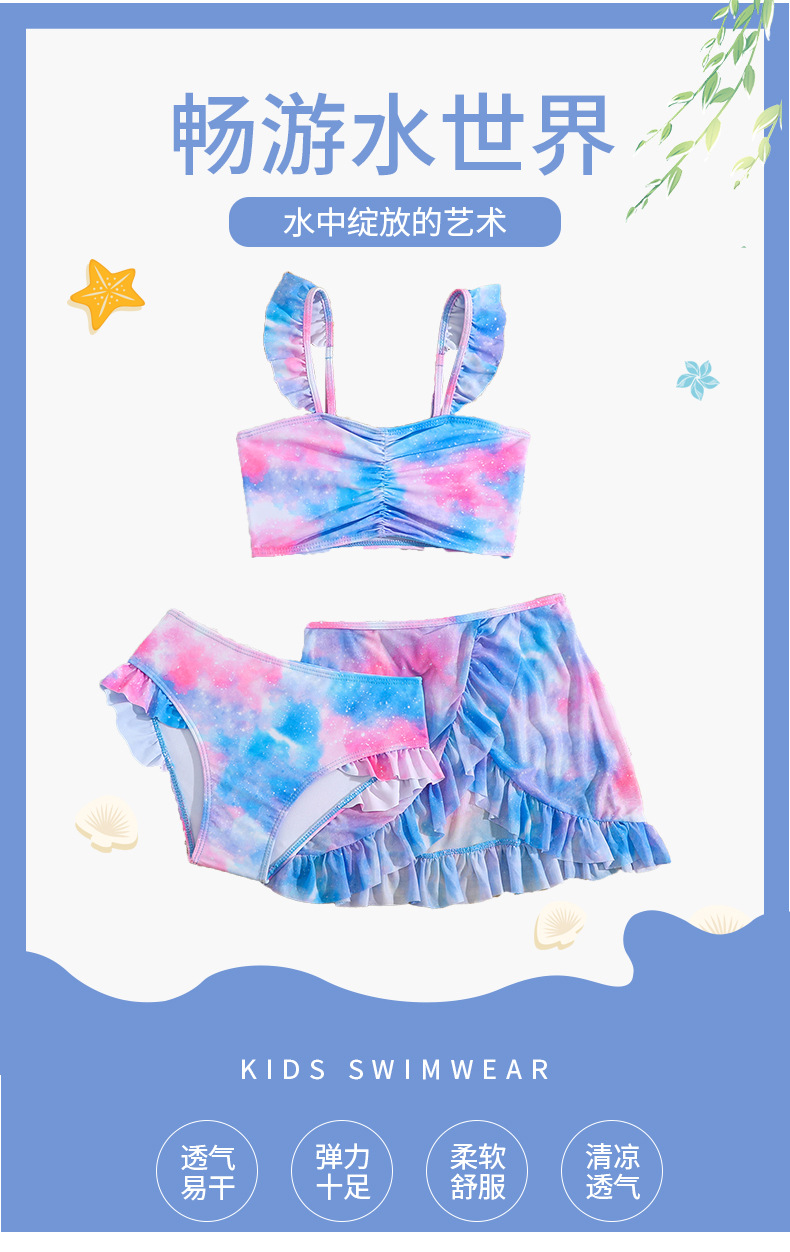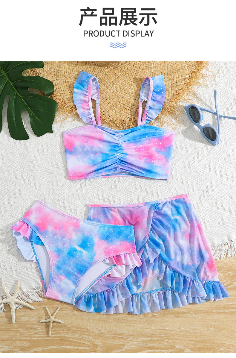 2025 새로운 어린이 3 피스 수영복 꽃 무늬 소녀 스플릿 수영복 크로스 보더 비키니 세트 수영복 도매