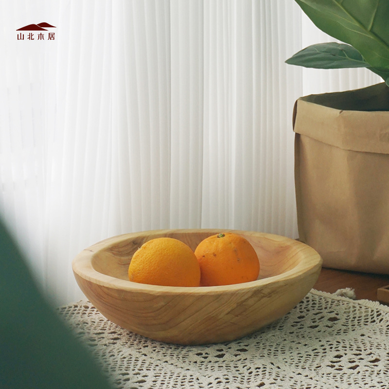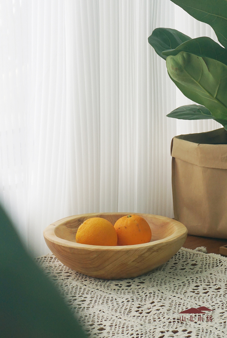 단단한 나무 과일 냄비 손으로 만든 뿌리 큰 Snbal 냄비 과일 접시 가정용 디너 플레이트 서양식 식기 목회 스타일 북유럽 데스크탑스토어 가기
