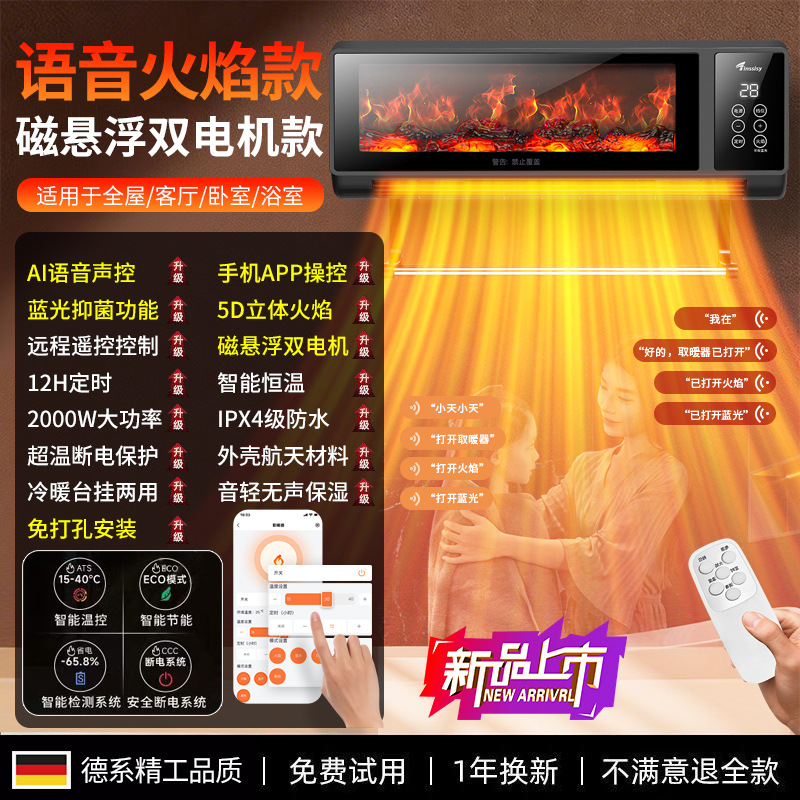 소스 제조 업체 그래 핀 히터 가정용 벽에 장착 된 불꽃 벽난로 음성 속도 가열 히터 에너지 절약스토어 가기