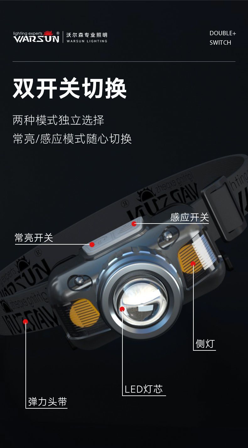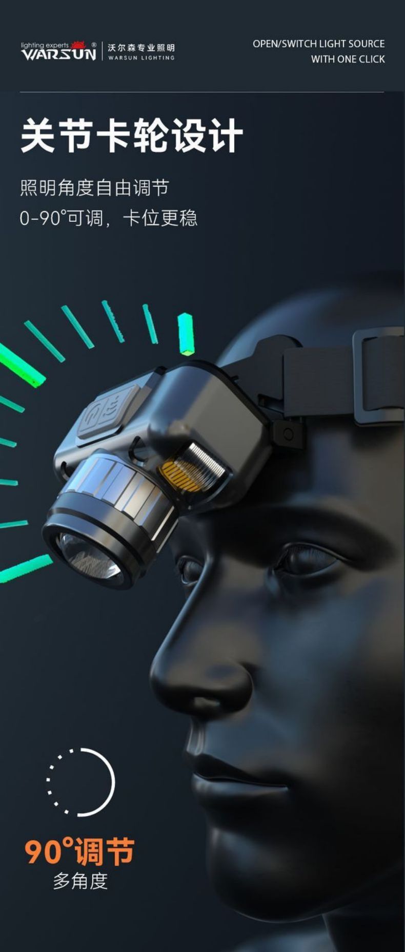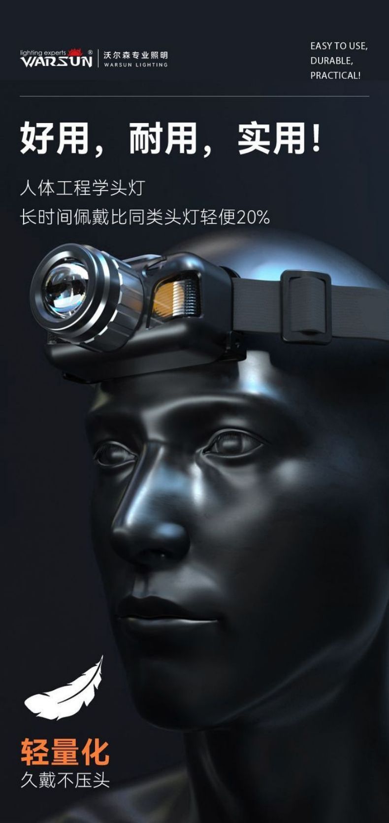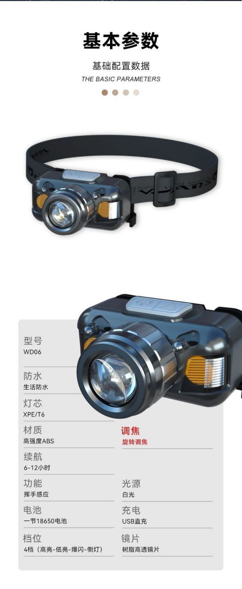 Wallson WD06 강한 가벼운 머리 장착 유도 헤드 라이트 야간 낚시 전용 야외 낚시 줌 슈퍼 밝은 롱샷 슈퍼 롱