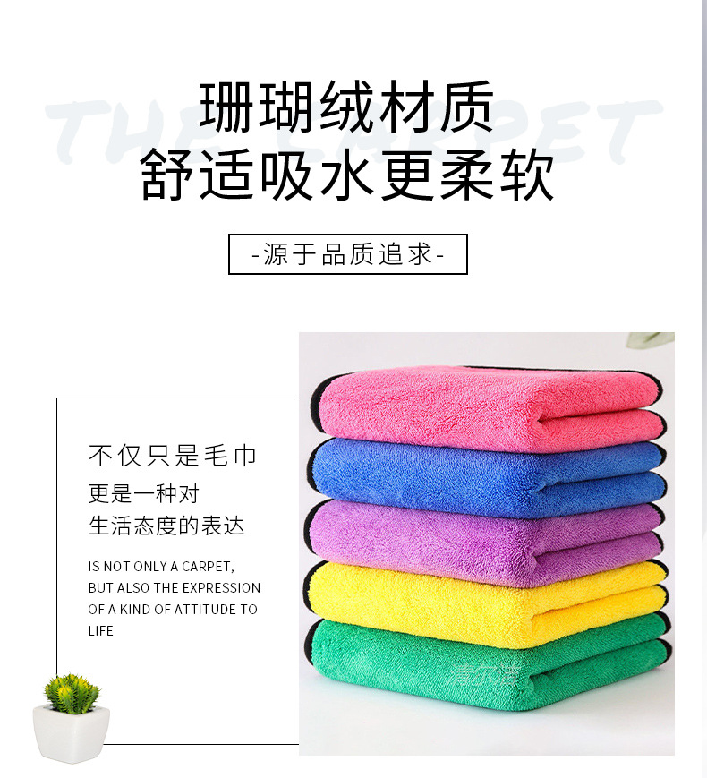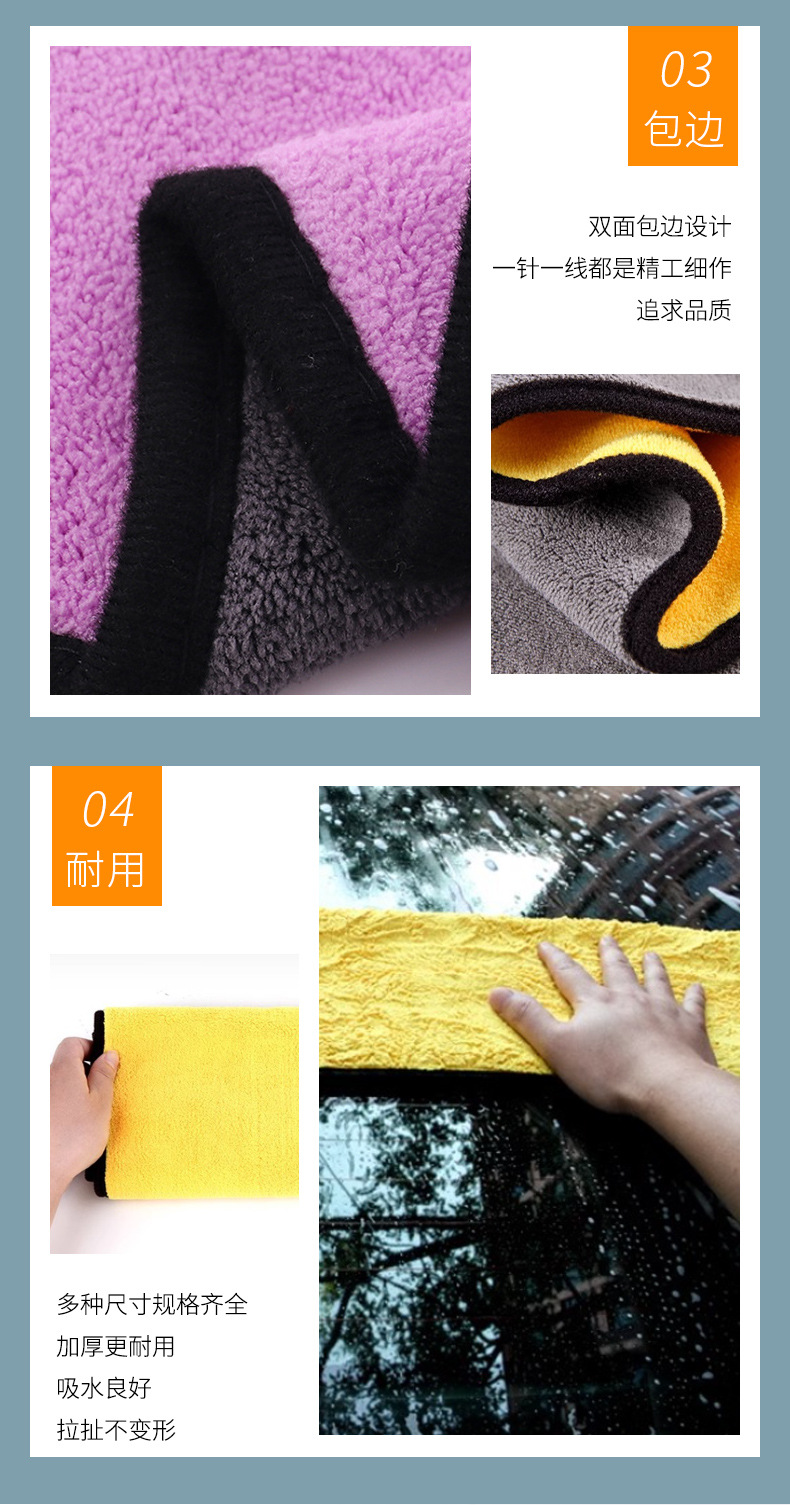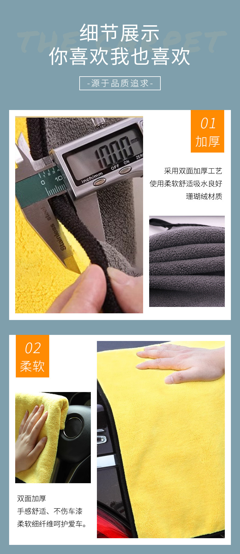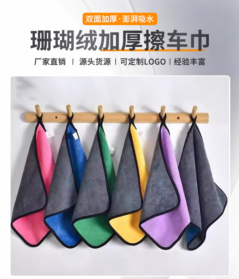 엄선된 도매 낚시용/세차용 타월, 양면 산호벨벳 두꺼운 자동차용 흡수 타월, 로고 인쇄 가능, 자동차 닦는 타월, 대량 배송스토어 가기