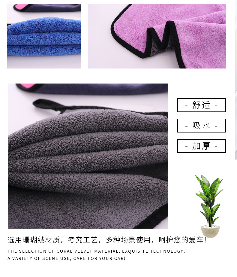 엄선된 도매 낚시용/세차용 타월, 양면 산호벨벳 두꺼운 자동차용 흡수 타월, 로고 인쇄 가능, 자동차 닦는 타월, 대량 배송