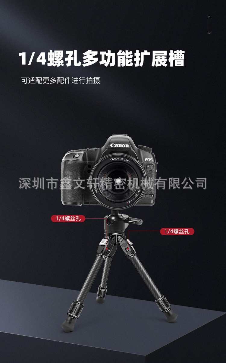 탄소 섬유 삼각대 SLR 카메라 팬/틸트 안정기 삼각대 다기능 1/4 확장 휴대 전화 생방송스토어 가기