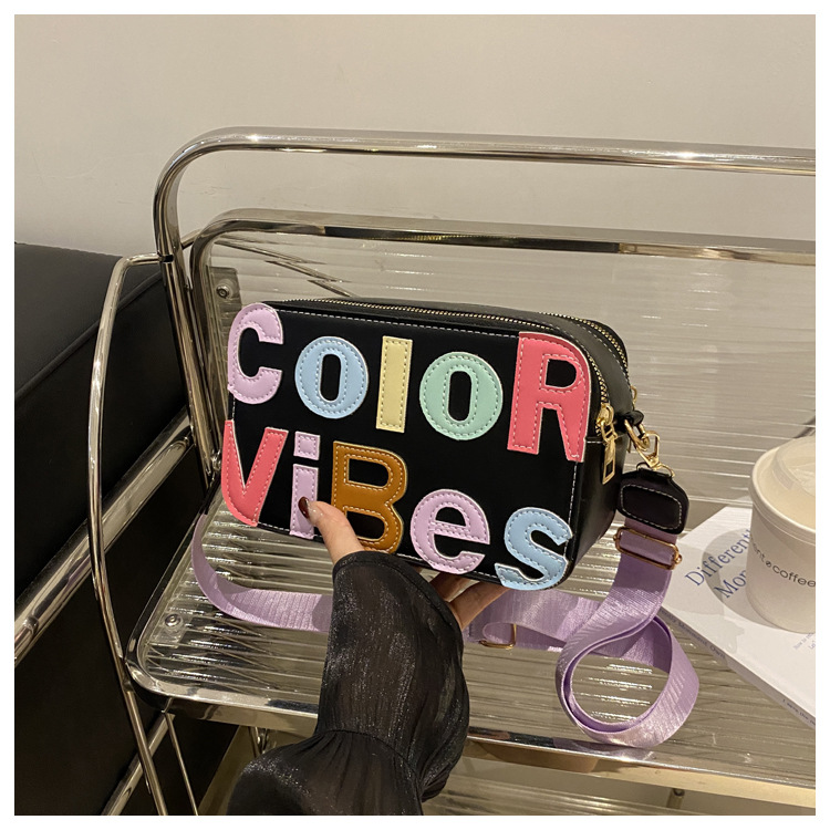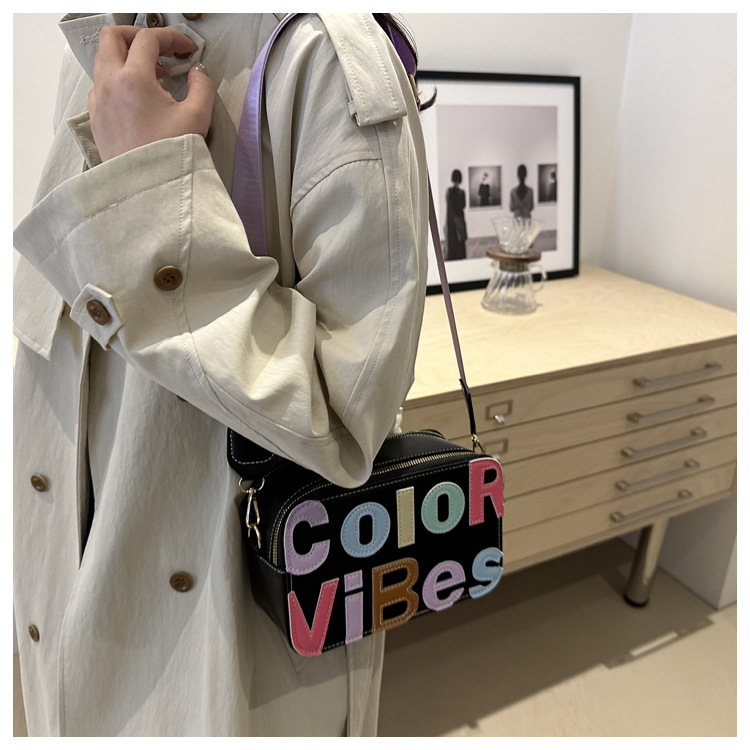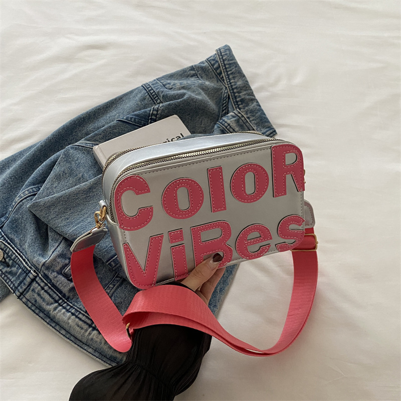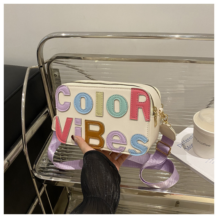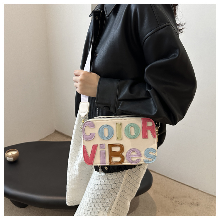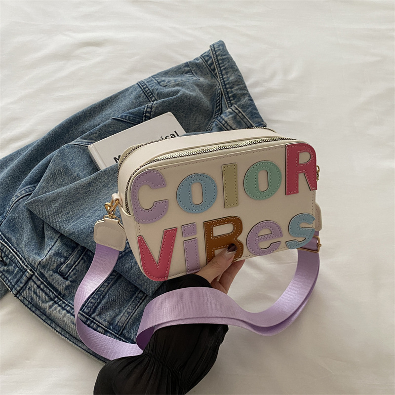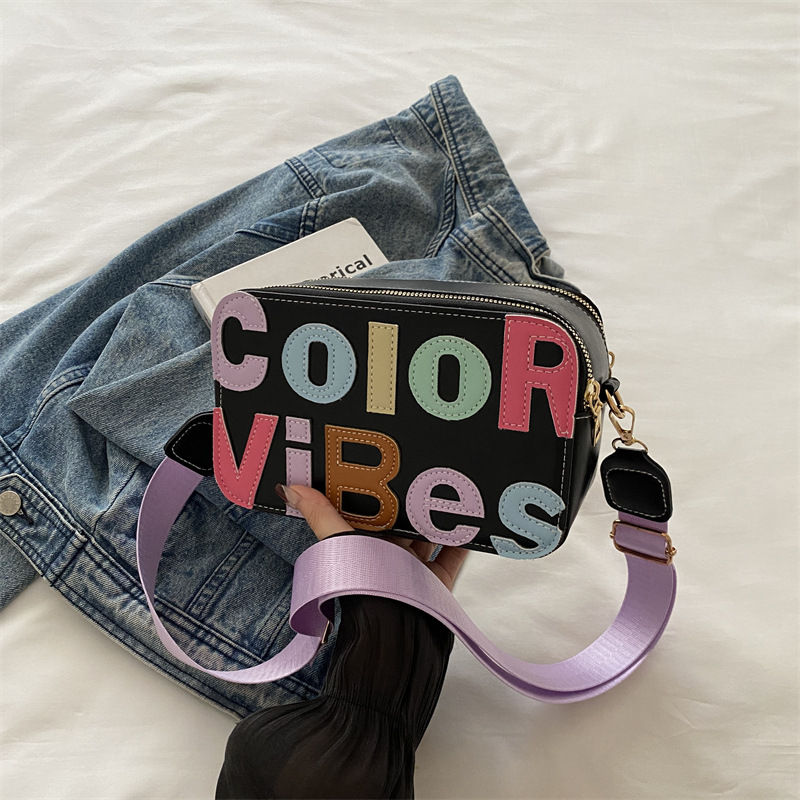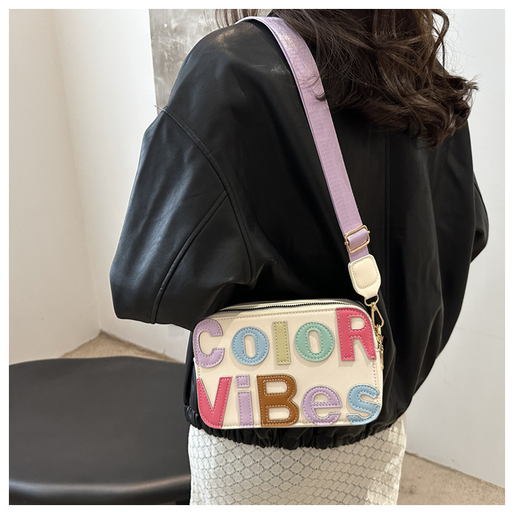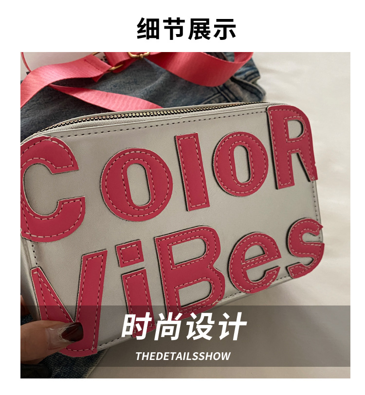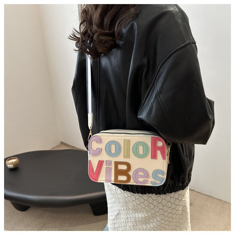 새로운 유행 색상 대비 유행 작은 광장 가방 틈새 컬러 편지 크로스 바디 백 도파민 인기있는 인쇄 사진 가방스토어 가기