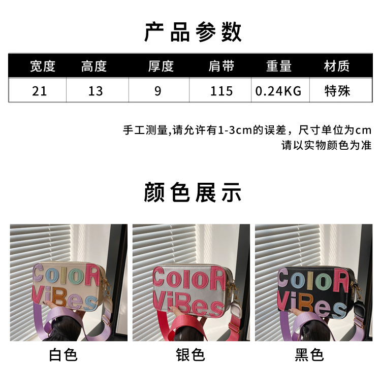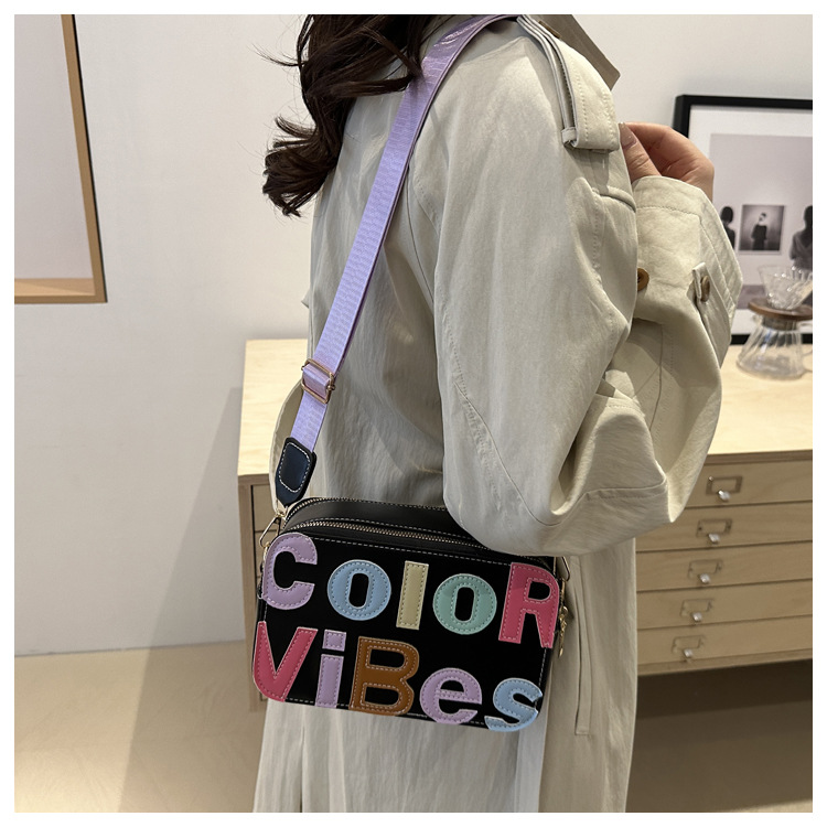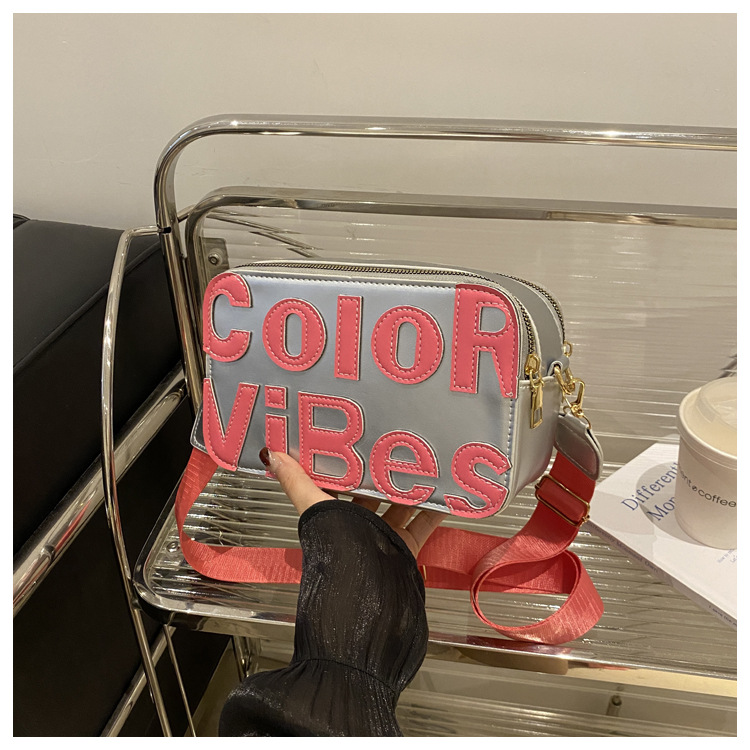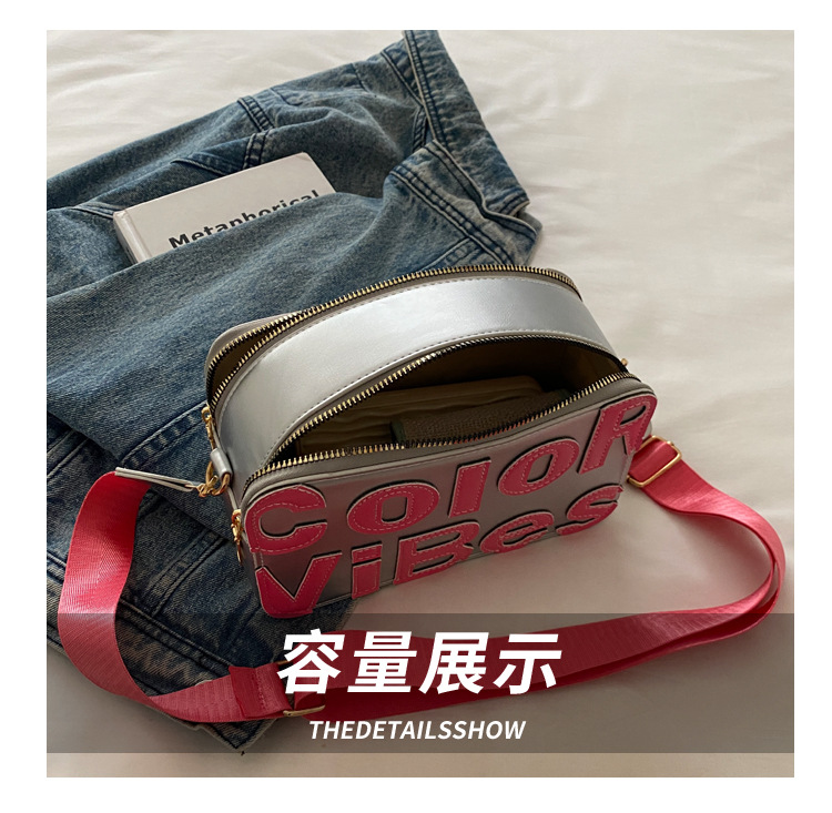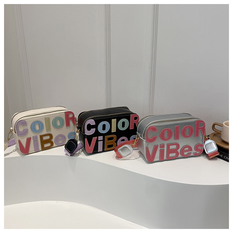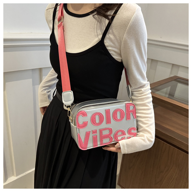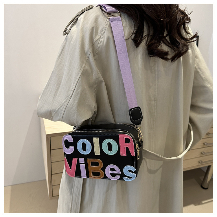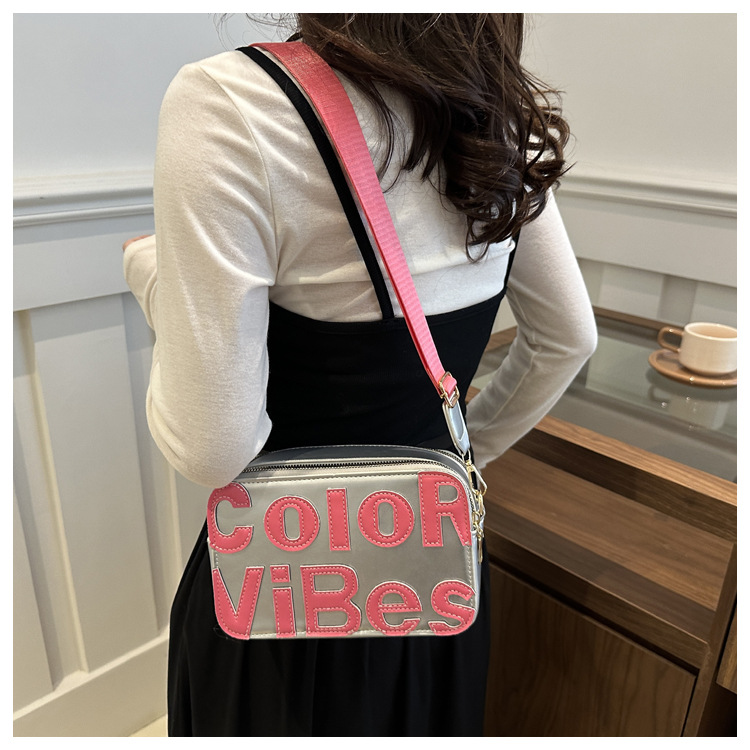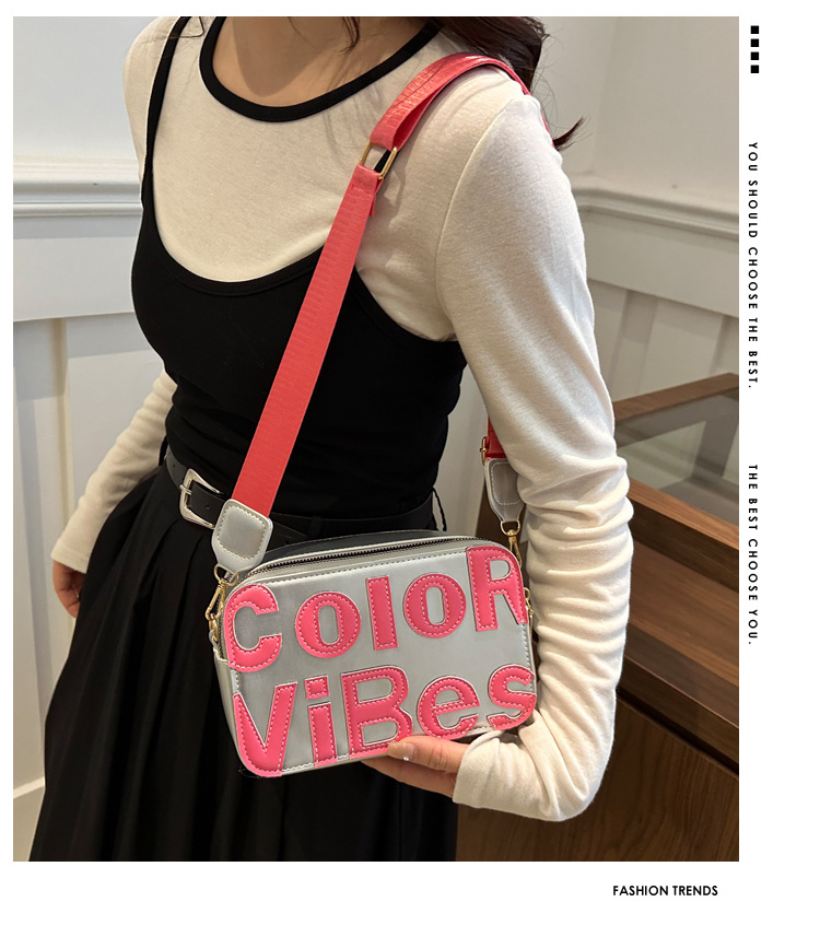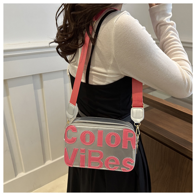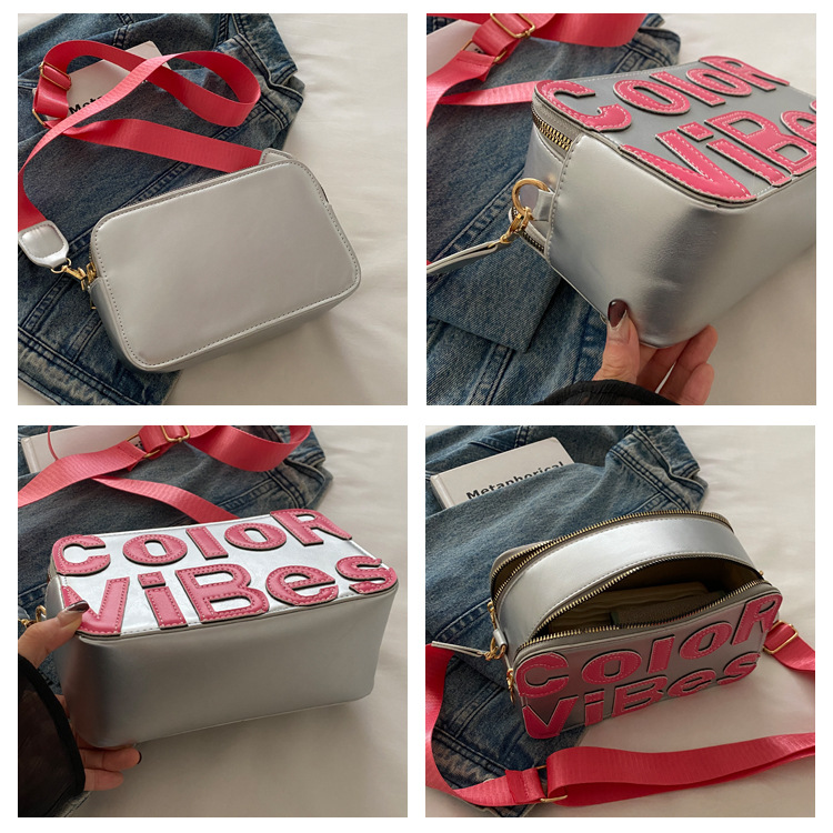 새로운 유행 색상 대비 유행 작은 광장 가방 틈새 컬러 편지 크로스 바디 백 도파민 인기있는 인쇄 사진 가방스토어 가기