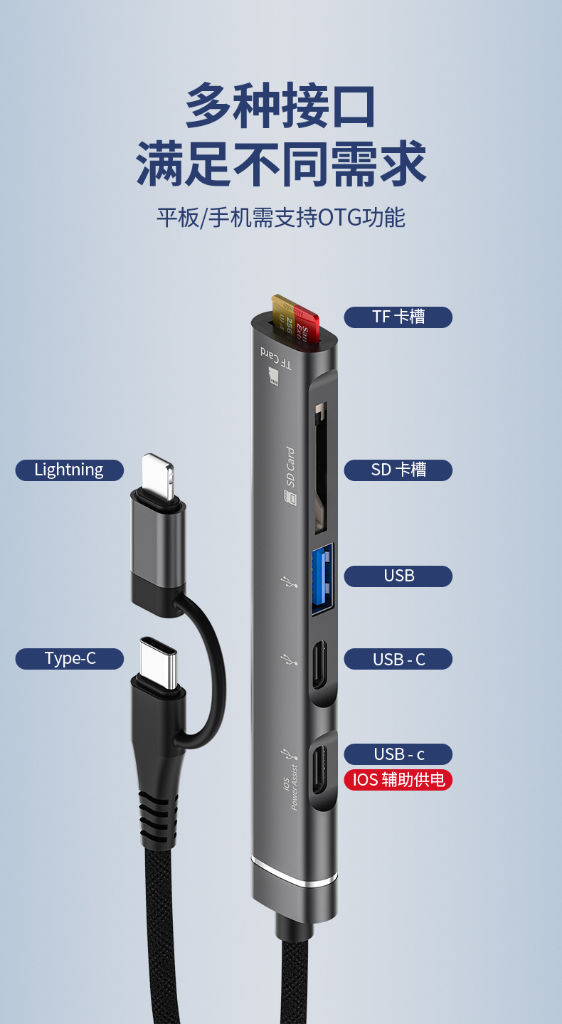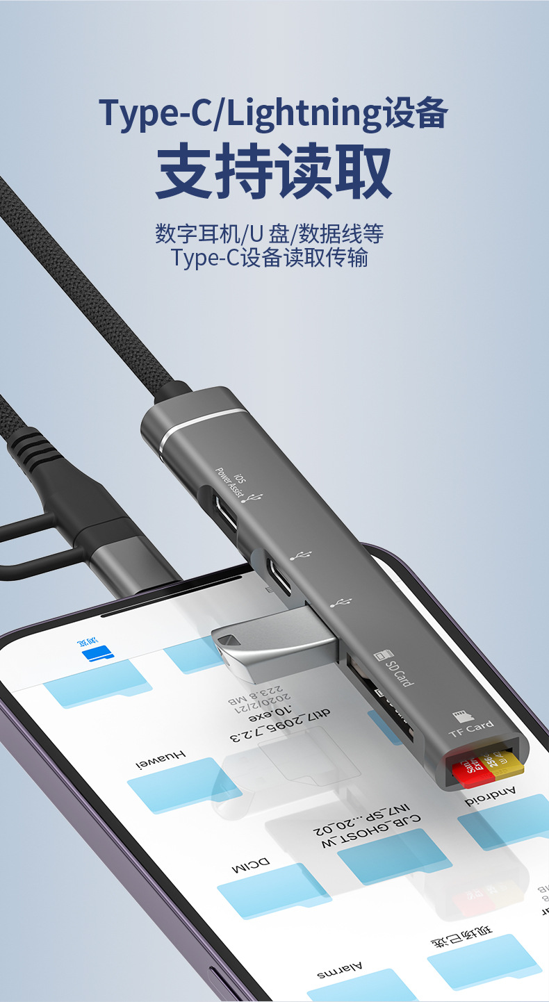 Apple typec-SD 카드 리더기 TF 메모리 카드에 적합 휴대 전화 태블릿 연결 U 디스크 충전 카드 리더기 허브