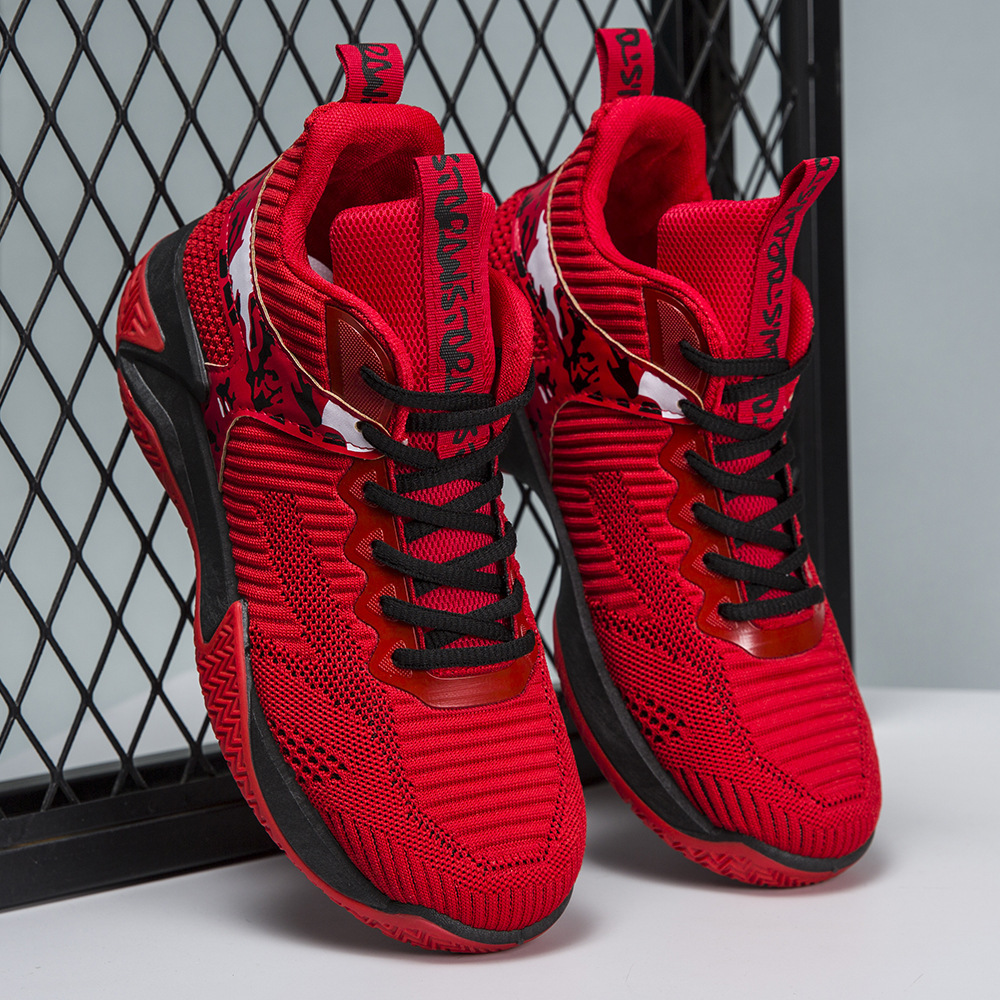 새로운 레이스 업 소프트 단독 플라이 짠 농구 신발 2024 대외 무역 남성 신발 패션 트렌드 남성 운동화 레드 플러스 사이즈스토어 가기