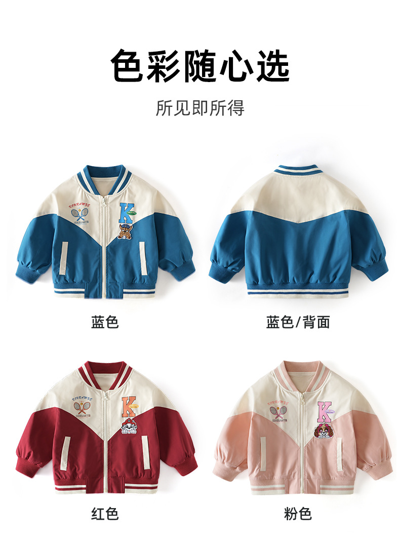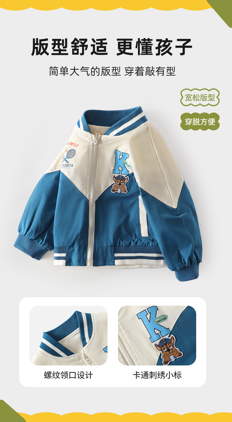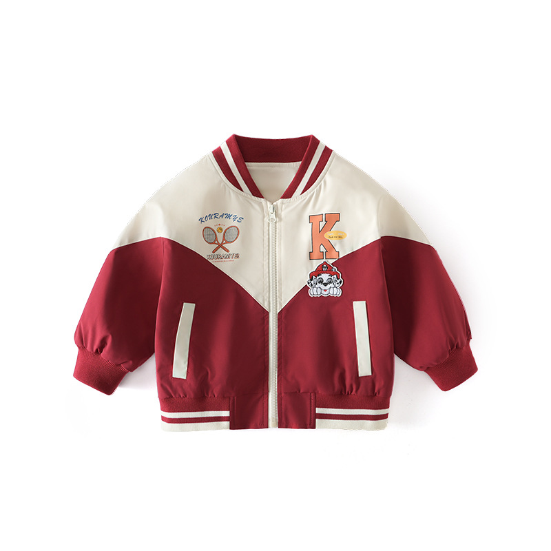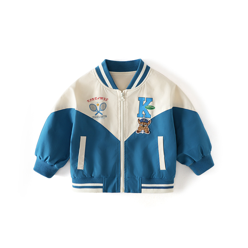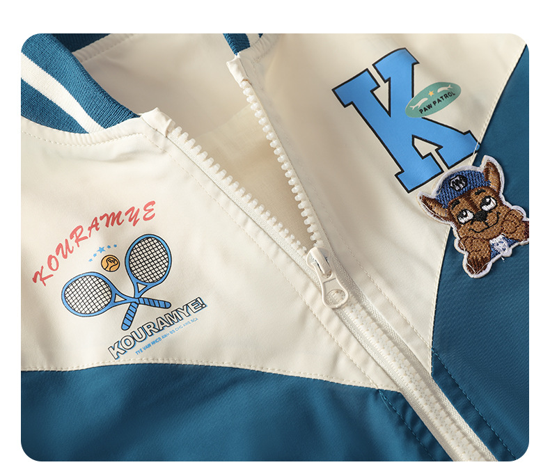 쿠와미 2024 가을 어린이 새 한국 캐주얼 만화 자수 대조 야구 세트 지퍼 재킷