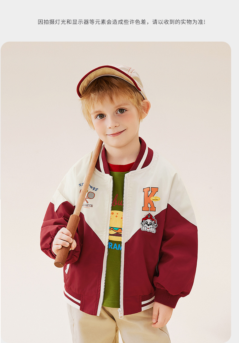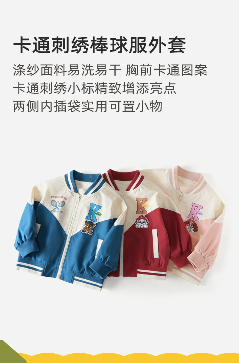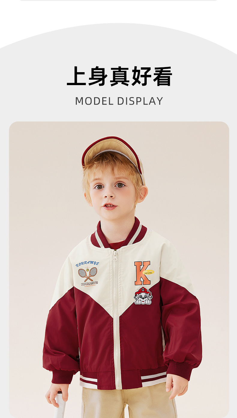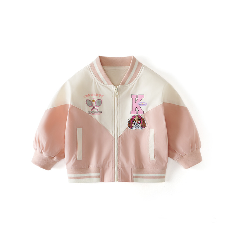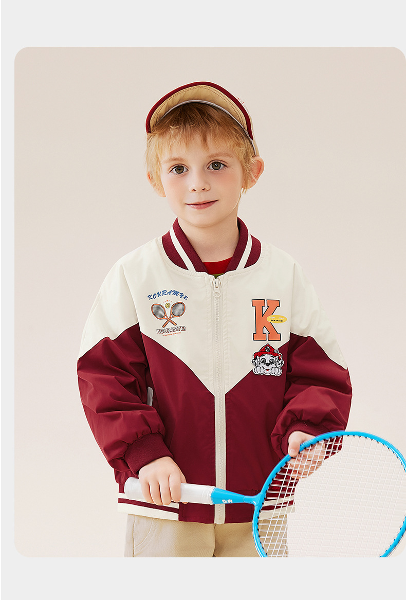 쿠와미 2024 가을 어린이 새 한국 캐주얼 만화 자수 대조 야구 세트 지퍼 재킷