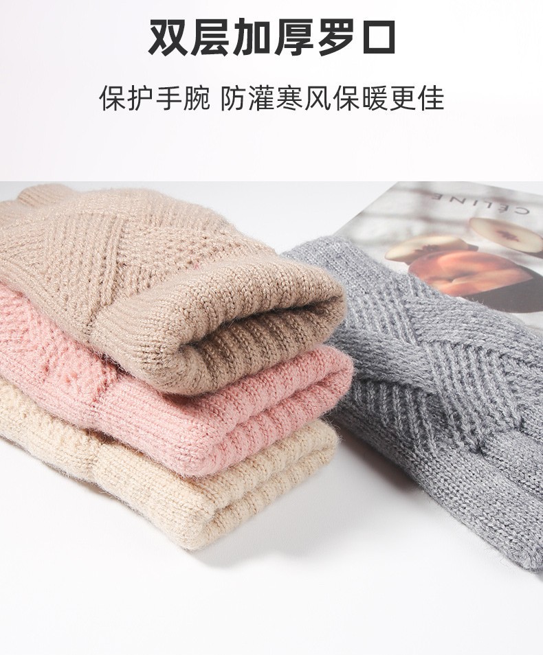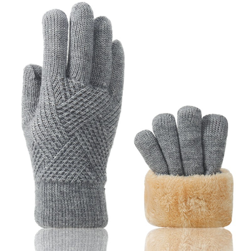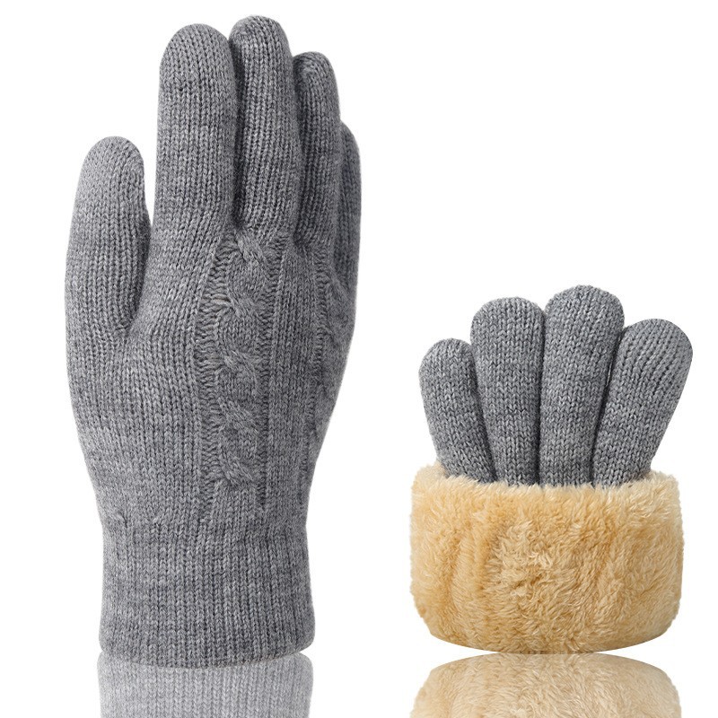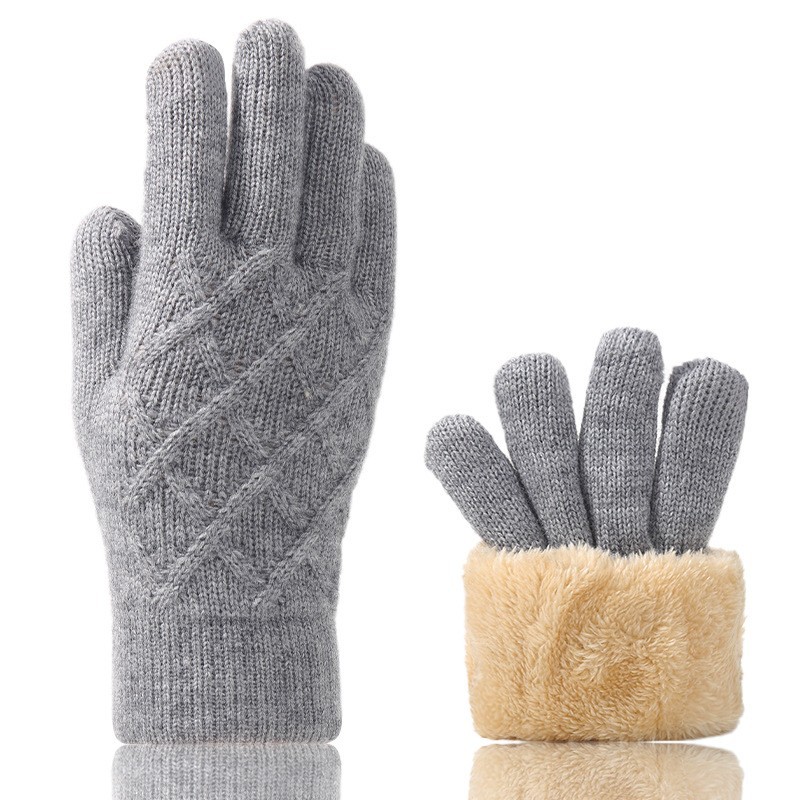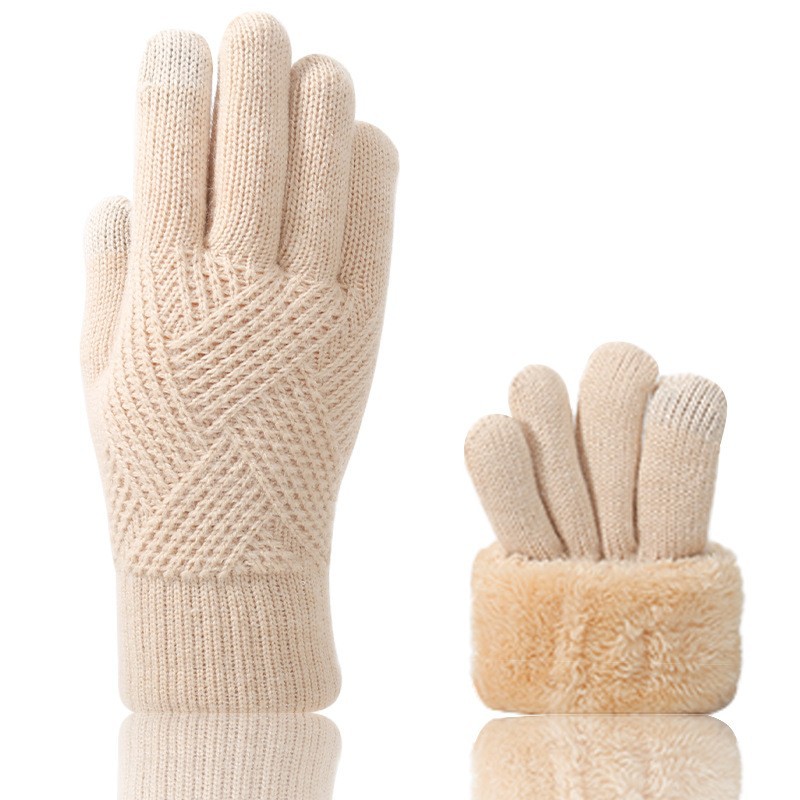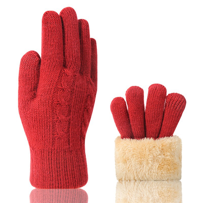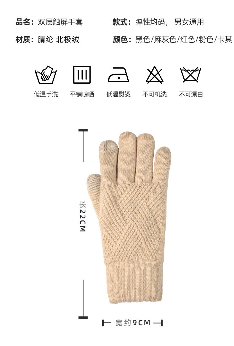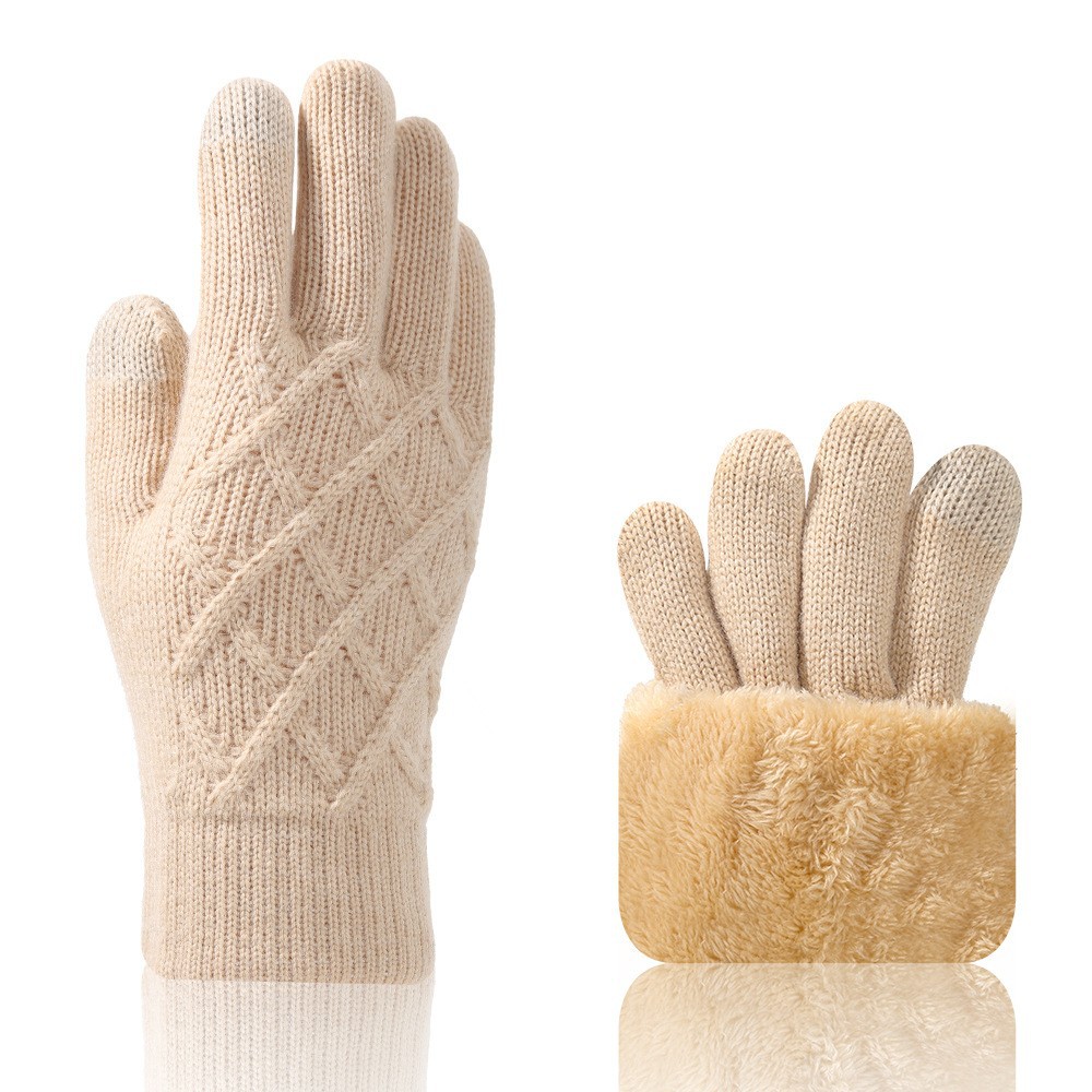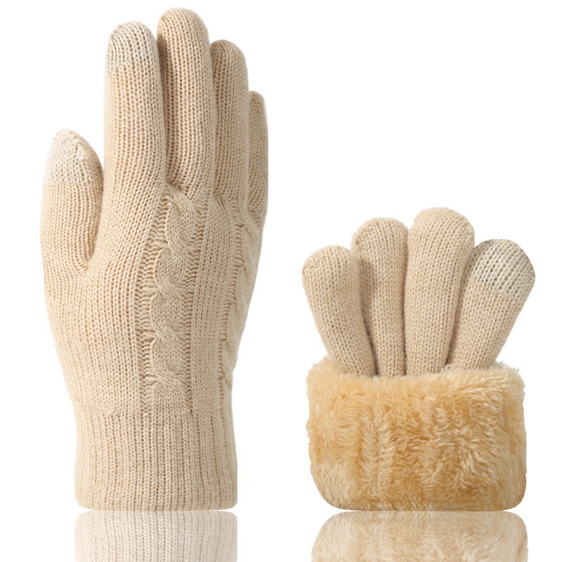터치스크린이 있는 여성용 겨울 장갑, 이중 레이어 탄성 보온 니트, 플러시 안감, 추운 날씨 산책용스토어 가기