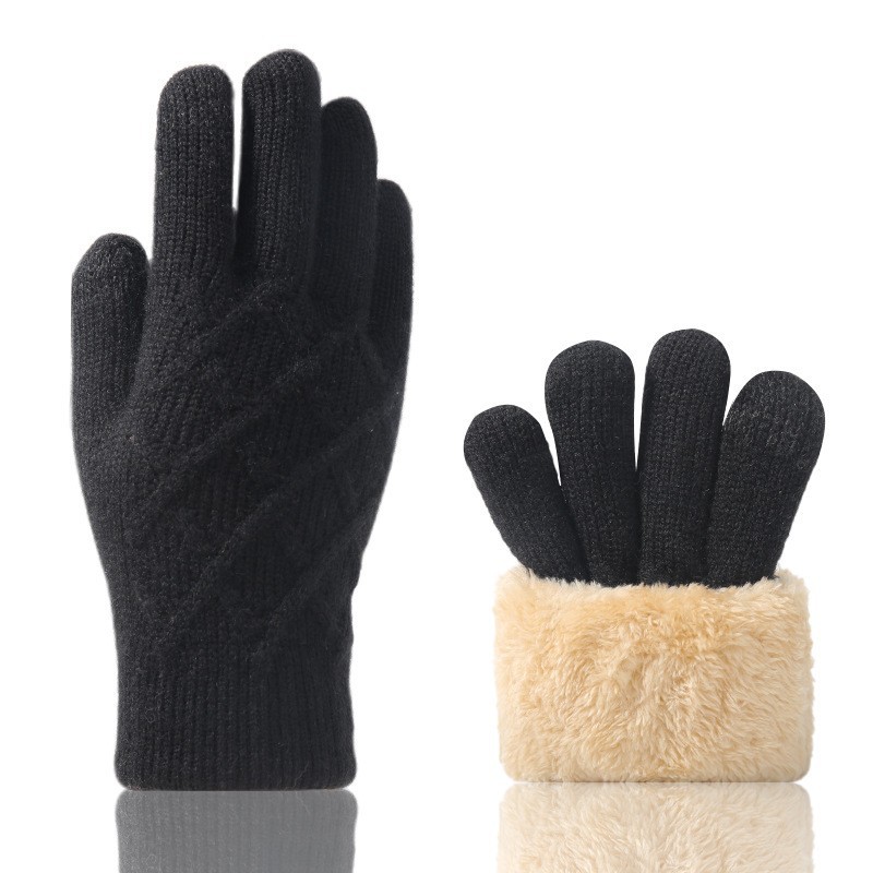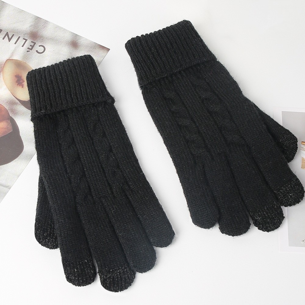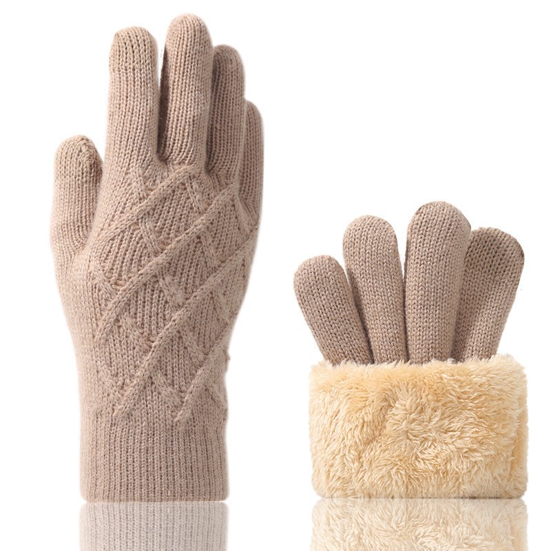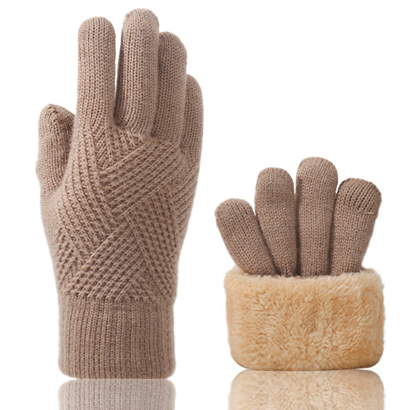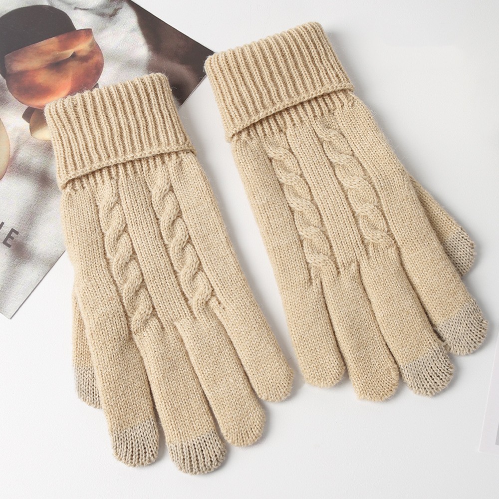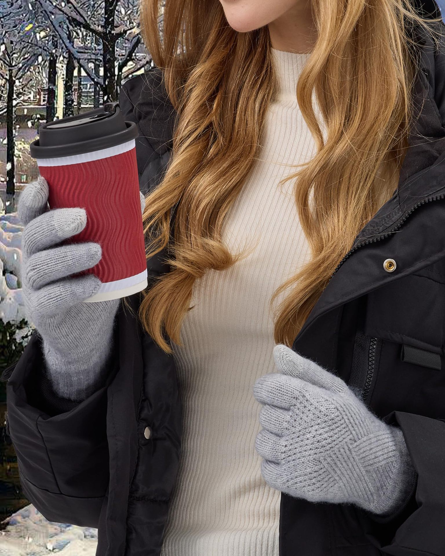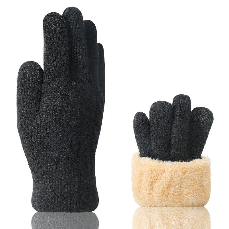 터치스크린이 있는 여성용 겨울 장갑, 이중 레이어 탄성 보온 니트, 플러시 안감, 추운 날씨 산책용스토어 가기
