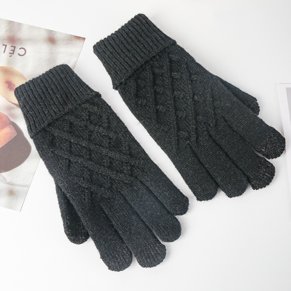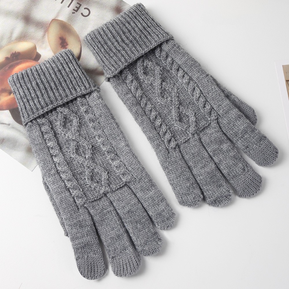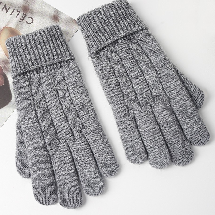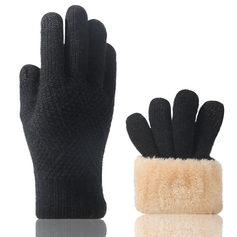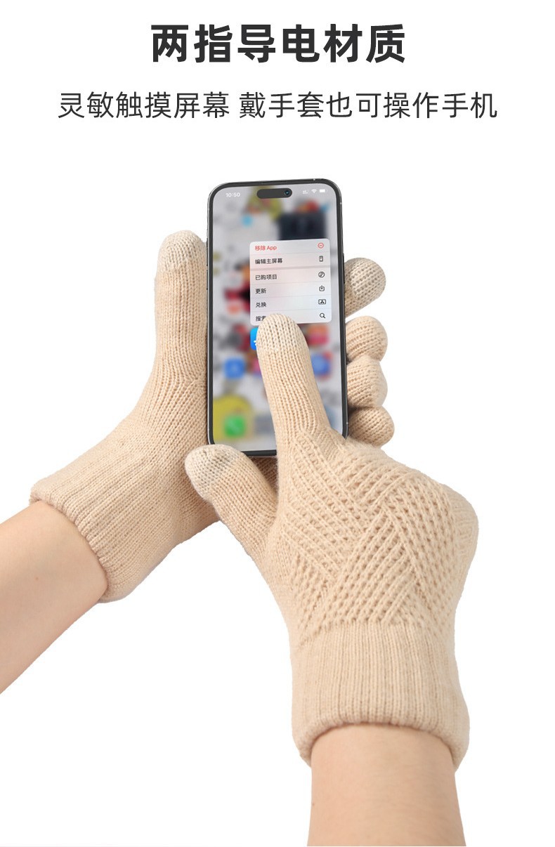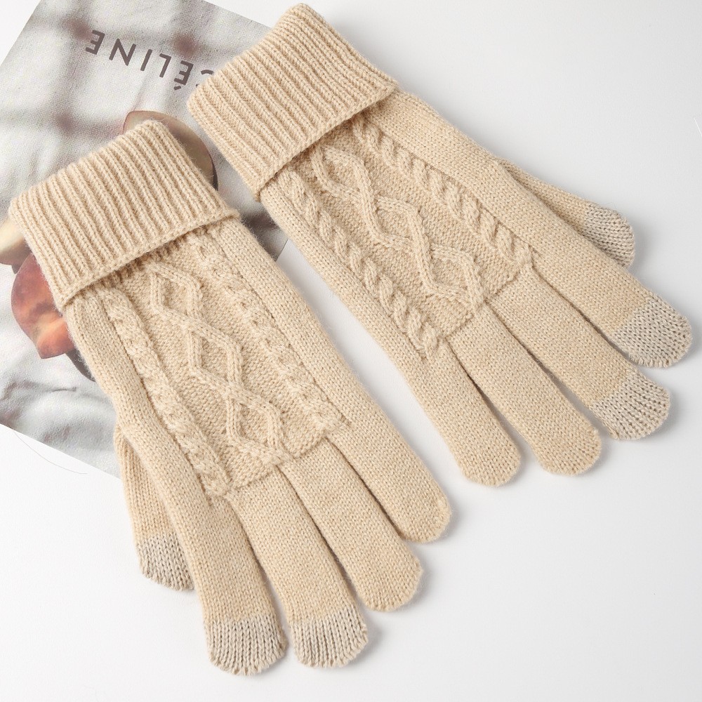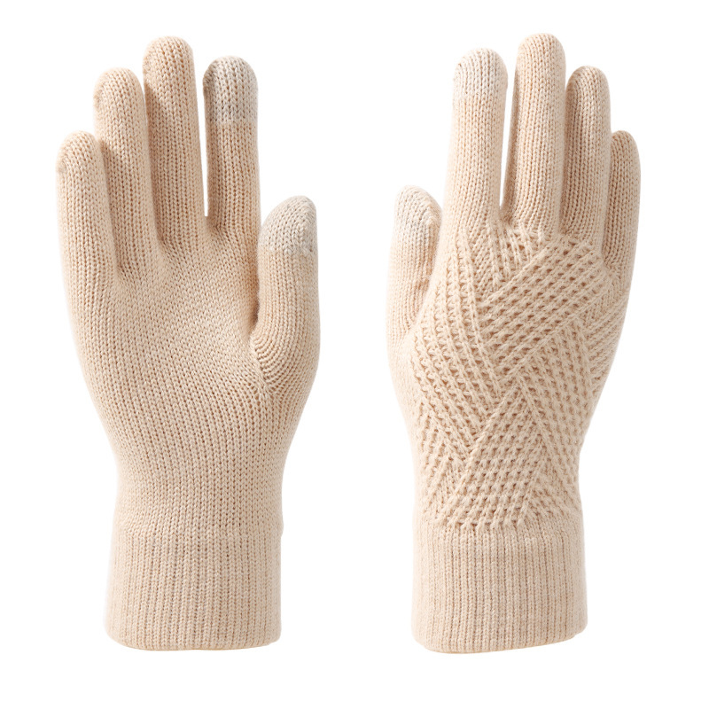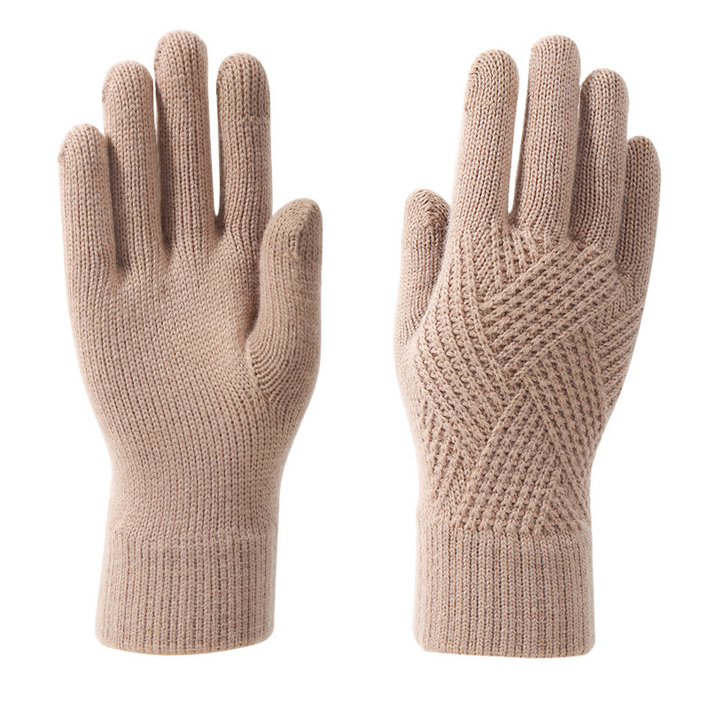 터치스크린이 있는 여성용 겨울 장갑, 이중 레이어 탄성 보온 니트, 플러시 안감, 추운 날씨 산책용스토어 가기