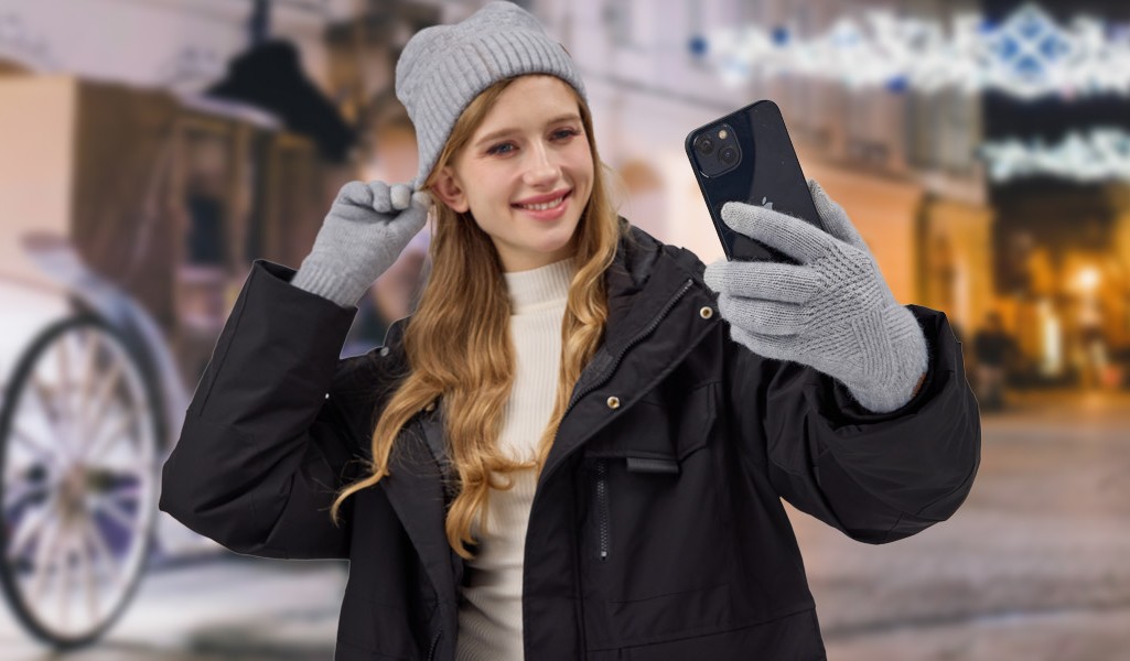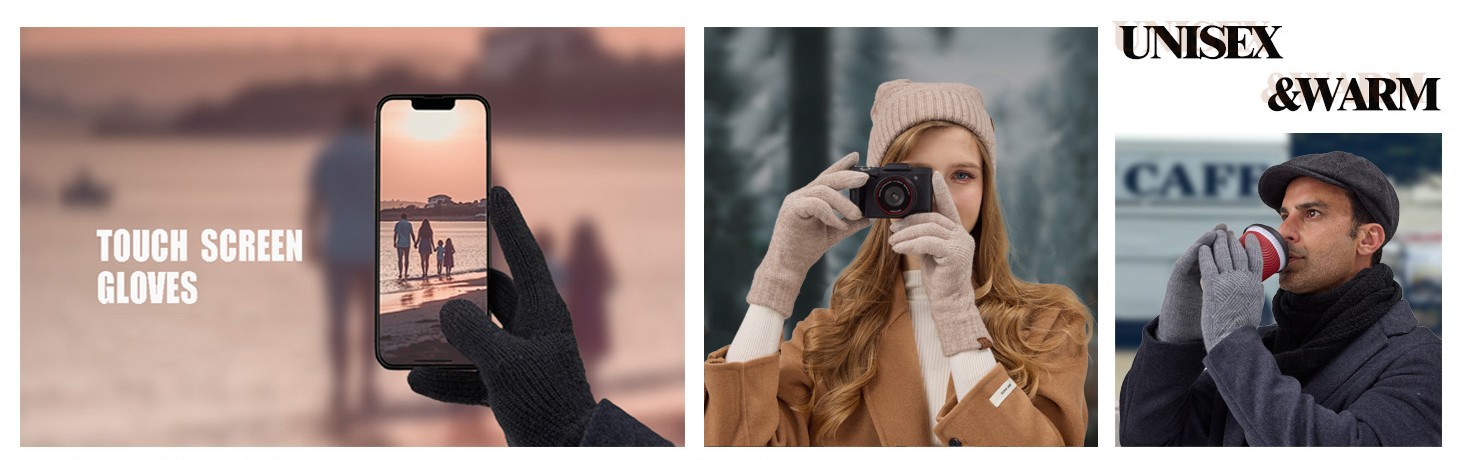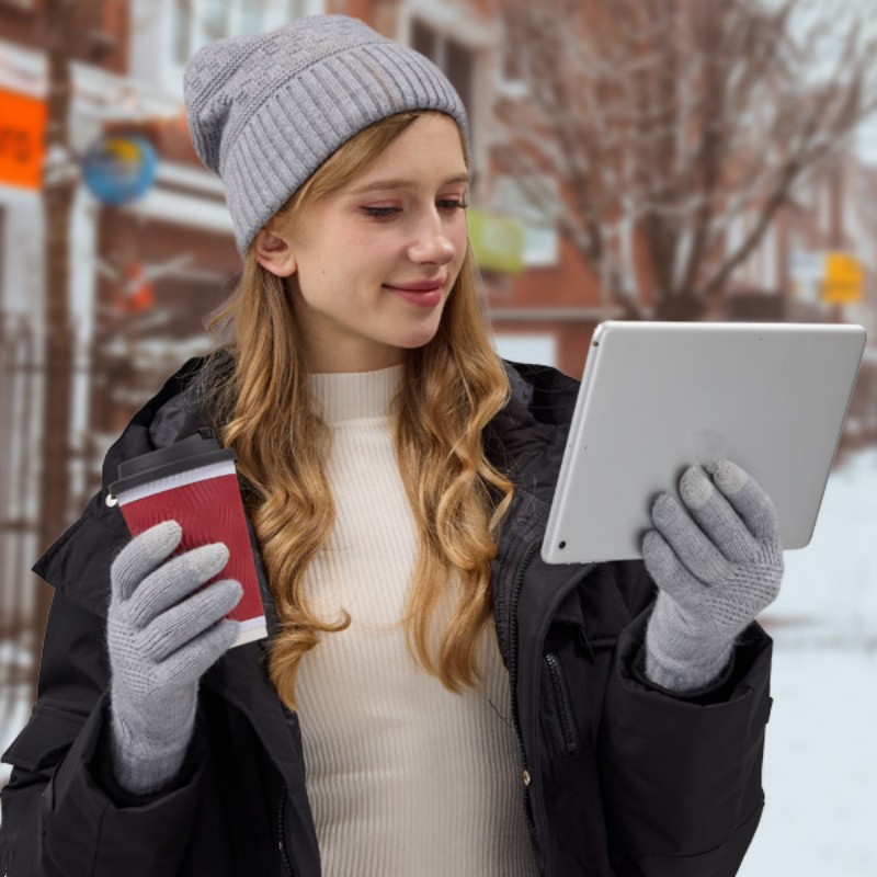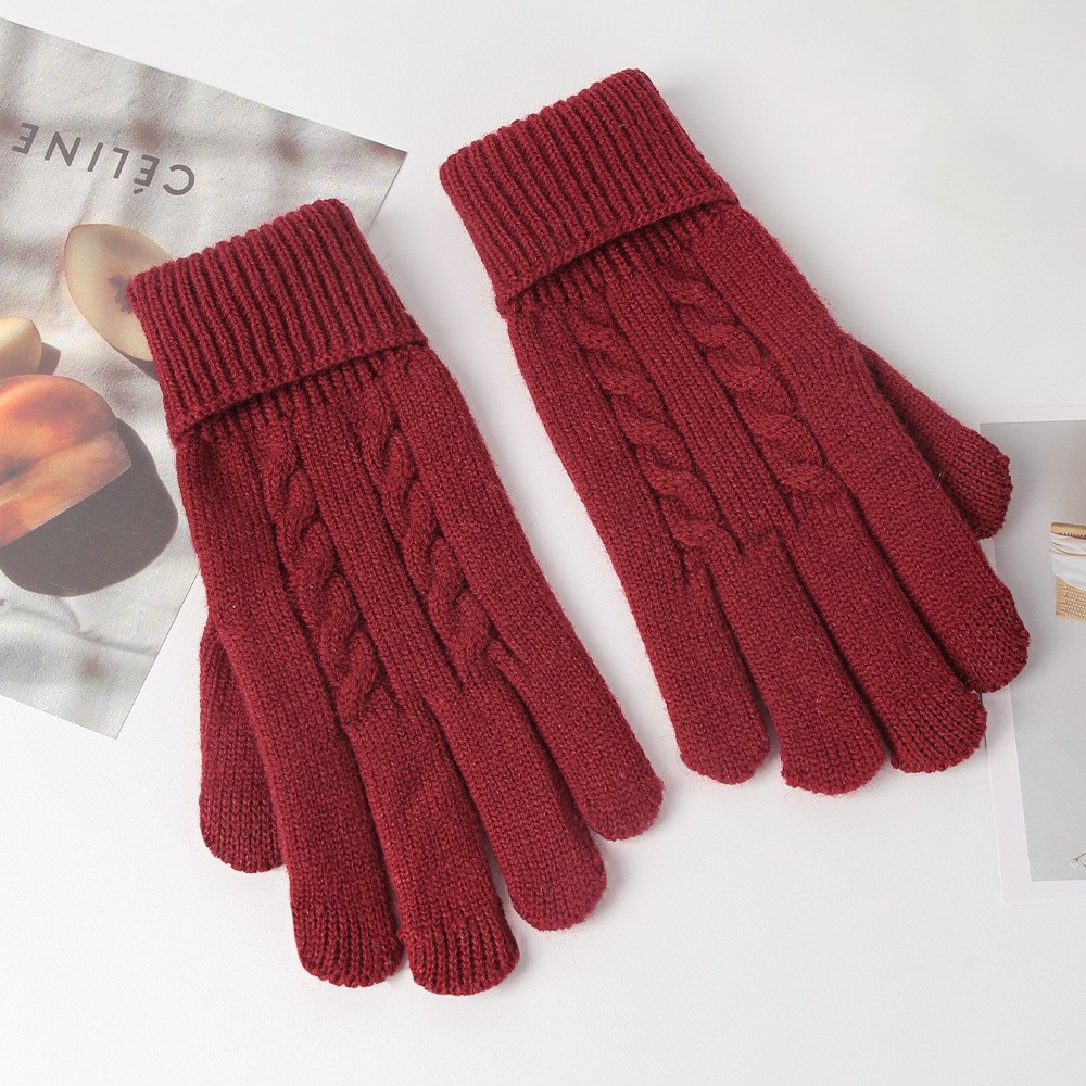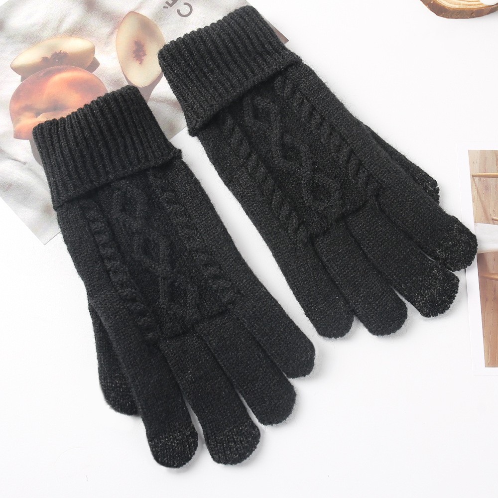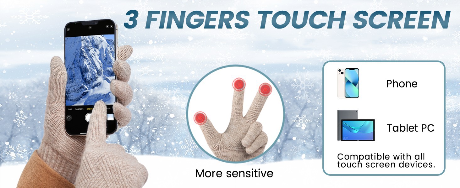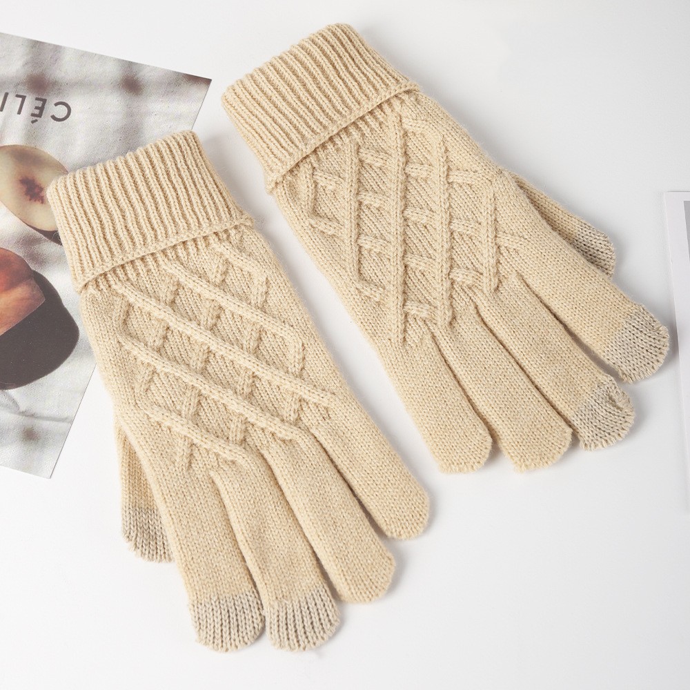 터치스크린이 있는 여성용 겨울 장갑, 이중 레이어 탄성 보온 니트, 플러시 안감, 추운 날씨 산책용스토어 가기